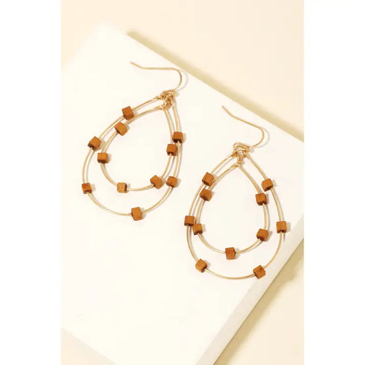 Wooden Beaded Hoop Earrings
