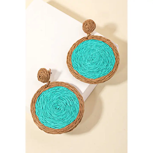 Straw Braided Circle Drop Earrings