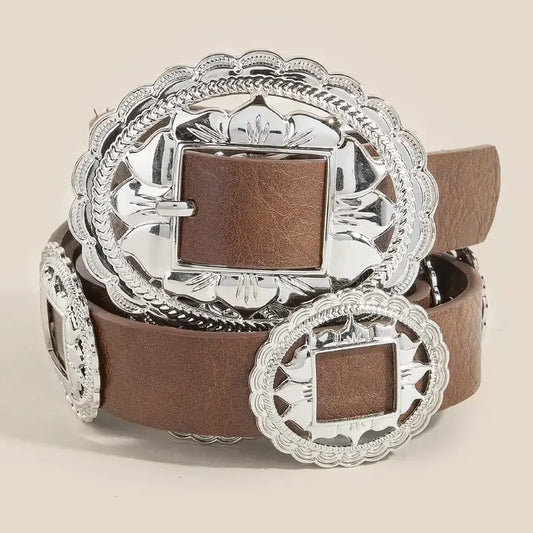 Western Floral Concho Disc Leather Belt