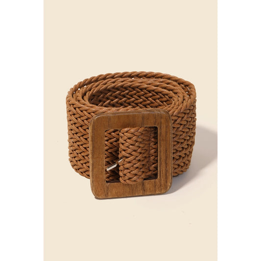 Wooden Square Buckle Braided Belt