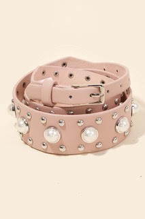 Pearl Studded Faux Leather Belt