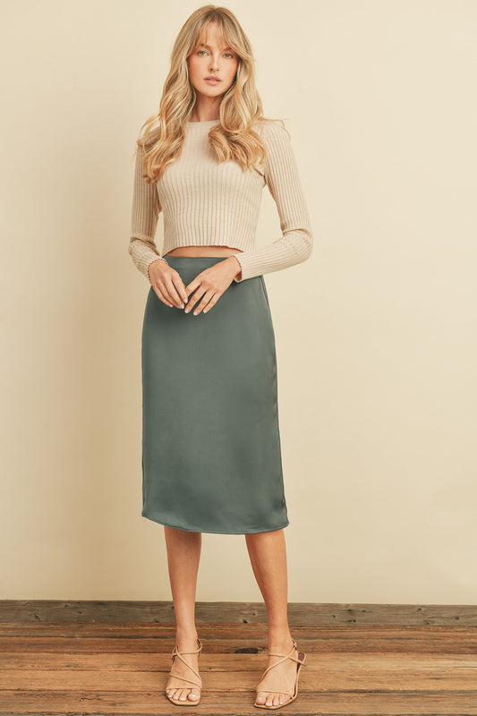 The Melani Satin Midi Skirt