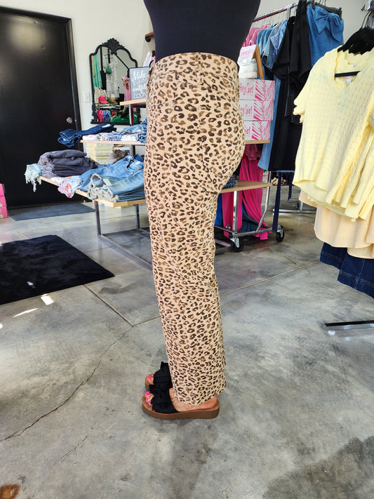 Risen Leopard Mid Rise Straight Denim Jeans