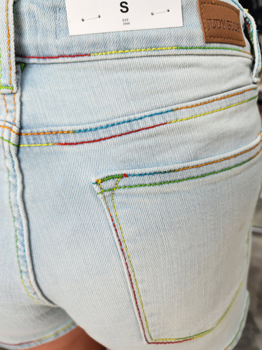 Judy Blue Mid Rise Rainbow Thread Shorts