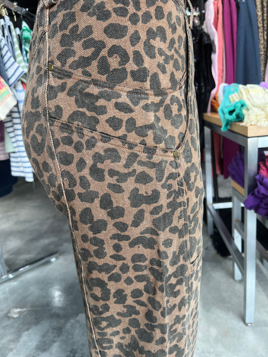 Leopard Mid Rise Wide Leg Barrel Pants