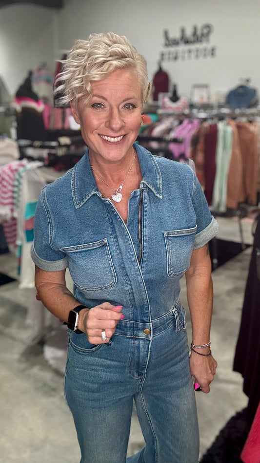 Judy Blue Denim Short Sleeve JumpsuitRegular price $120.00Regular priceUnit price / per-