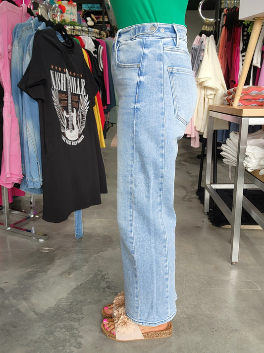 Judy Blue HW Stone Wash Retro Wide Skewed Denim Jeans