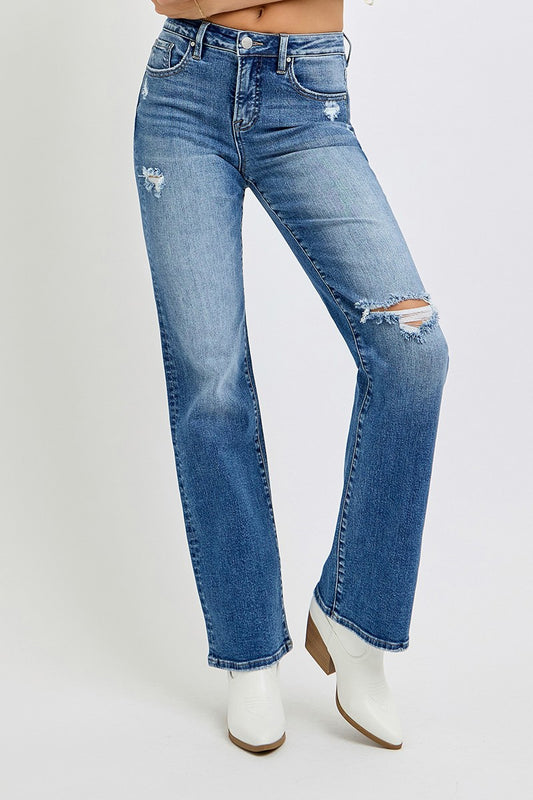 Risen Tummy Control High Rise Straight Distressed JeansRegular price $64.00Regular priceUnit price / per-