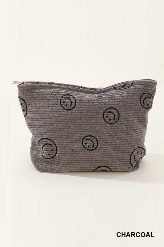 Smiley Face Corduroy Cosmetic Pouch Bag