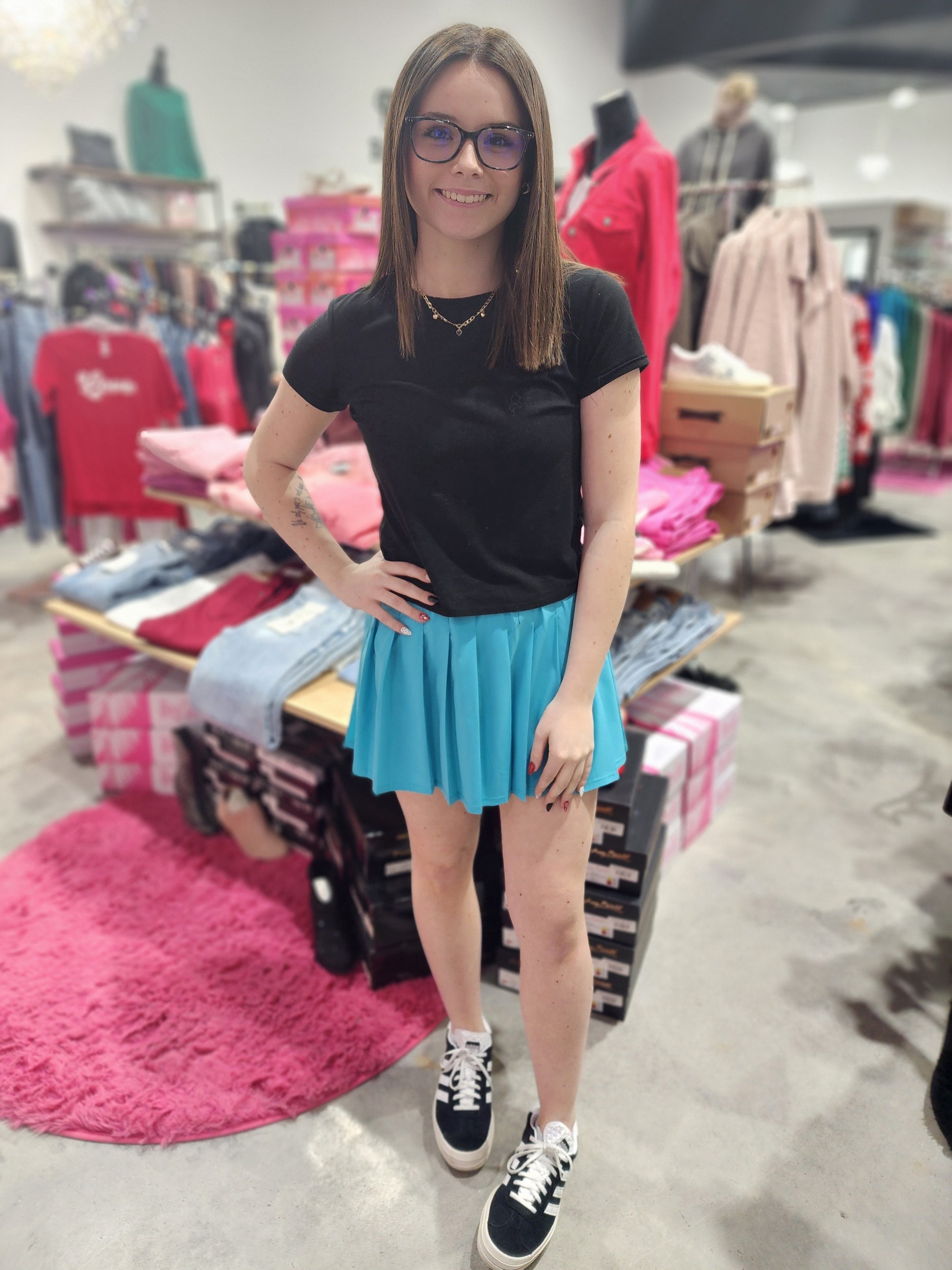 Playfully conquer the court with our Active Pleated Tennis Skort in highlight blue. Its pleated design adds a touch of style while its lightweight microfiber material keeps you moving with ease.