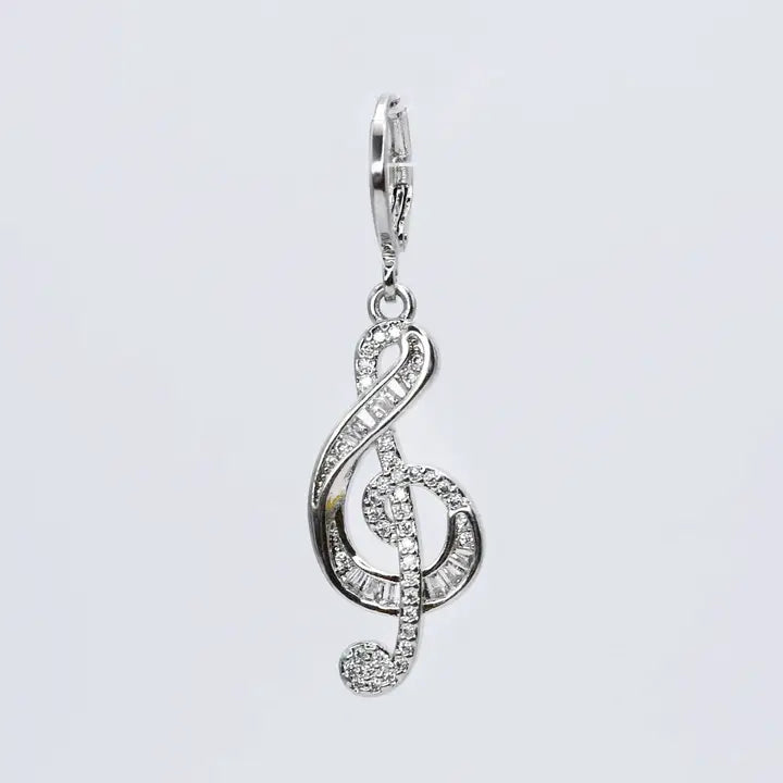 Embrace elegance and charm with the Music Note Charm! This Exquisite piece features a music note design trimmed with rhinestones. Ideal for adding a touch of grace and love to any necklace or bracelet, this charm is a timeless symbol of beauty and sophistication.