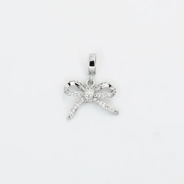 Embrace elegance and charm with the Mini Ribbon Charm. This Exquisite piece features a dainty bow design detailed with shimmering cubic zirconia stones. Ideal for adding a touch of grace and love to any necklace or bracelet, this charm is a timeless symbol of beauty and sophistication.