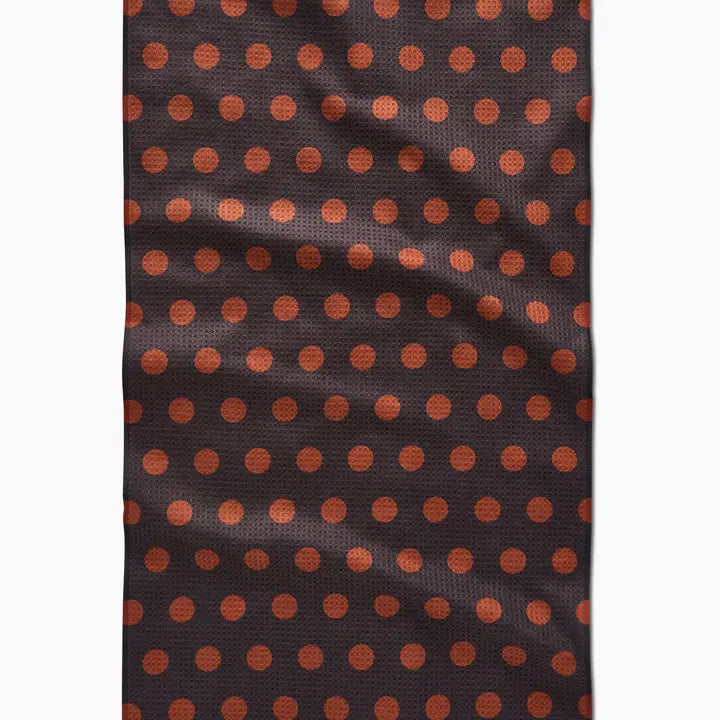 Upgrade your kitchen with our Geometry - Cocoa Dots Tea Towel. Made from recycled polyester, this 18" x 30" towel offers superior cleaning and next-level absorbency thanks to its waffle weave construction. Hang loop and quick-drying fabric make it both cute and practical. Elevate your tea time in style!