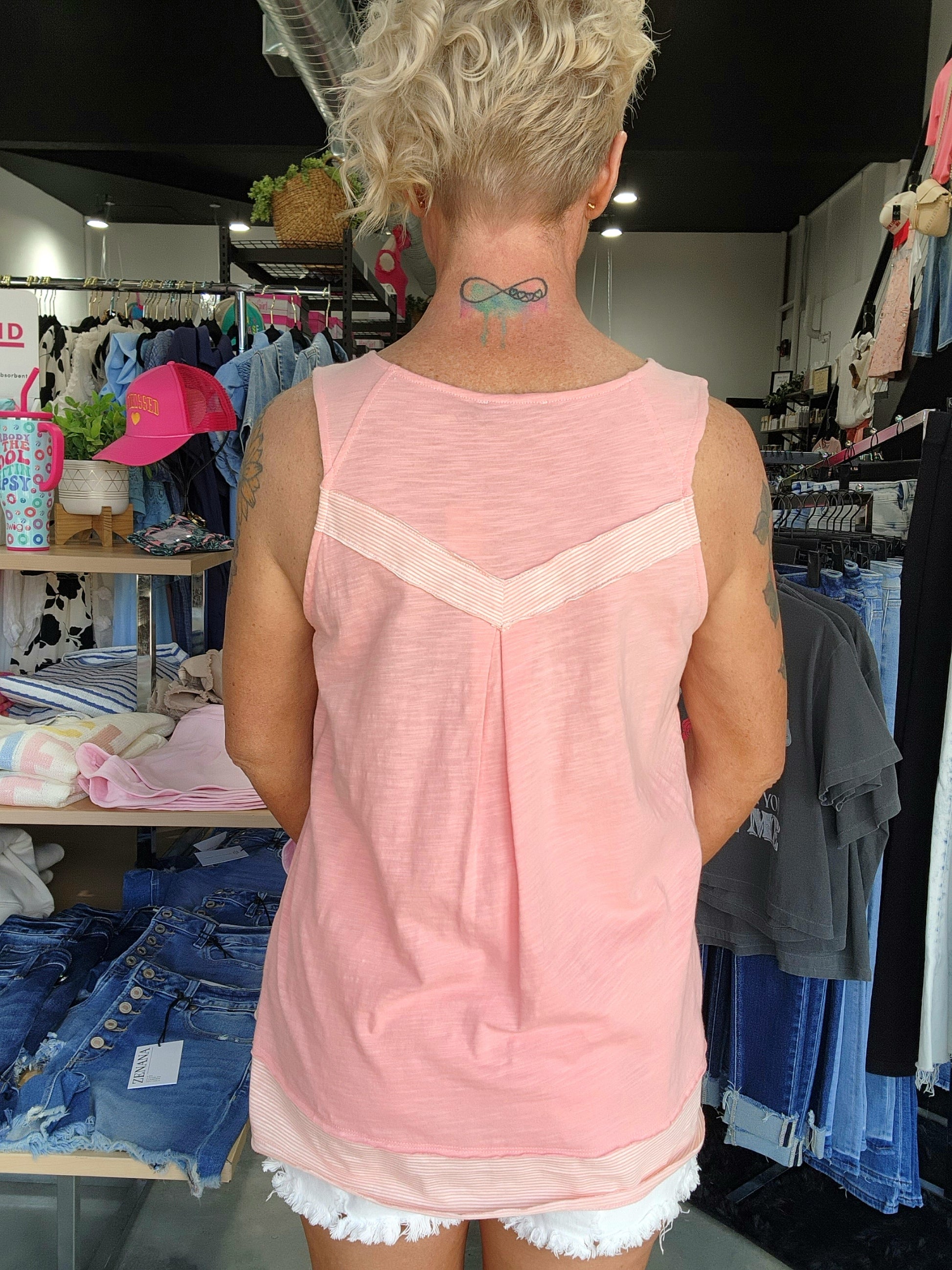 Stay cool and fashionable on a hot summer day! Our Coral Breeze Sleeveless top is sure to give you an outfit you'll rock and roll with! Wrap your look around the coral v-neck, striped front and breezy sleeveless design. Be a walking ray of sunshine in this must-have top!