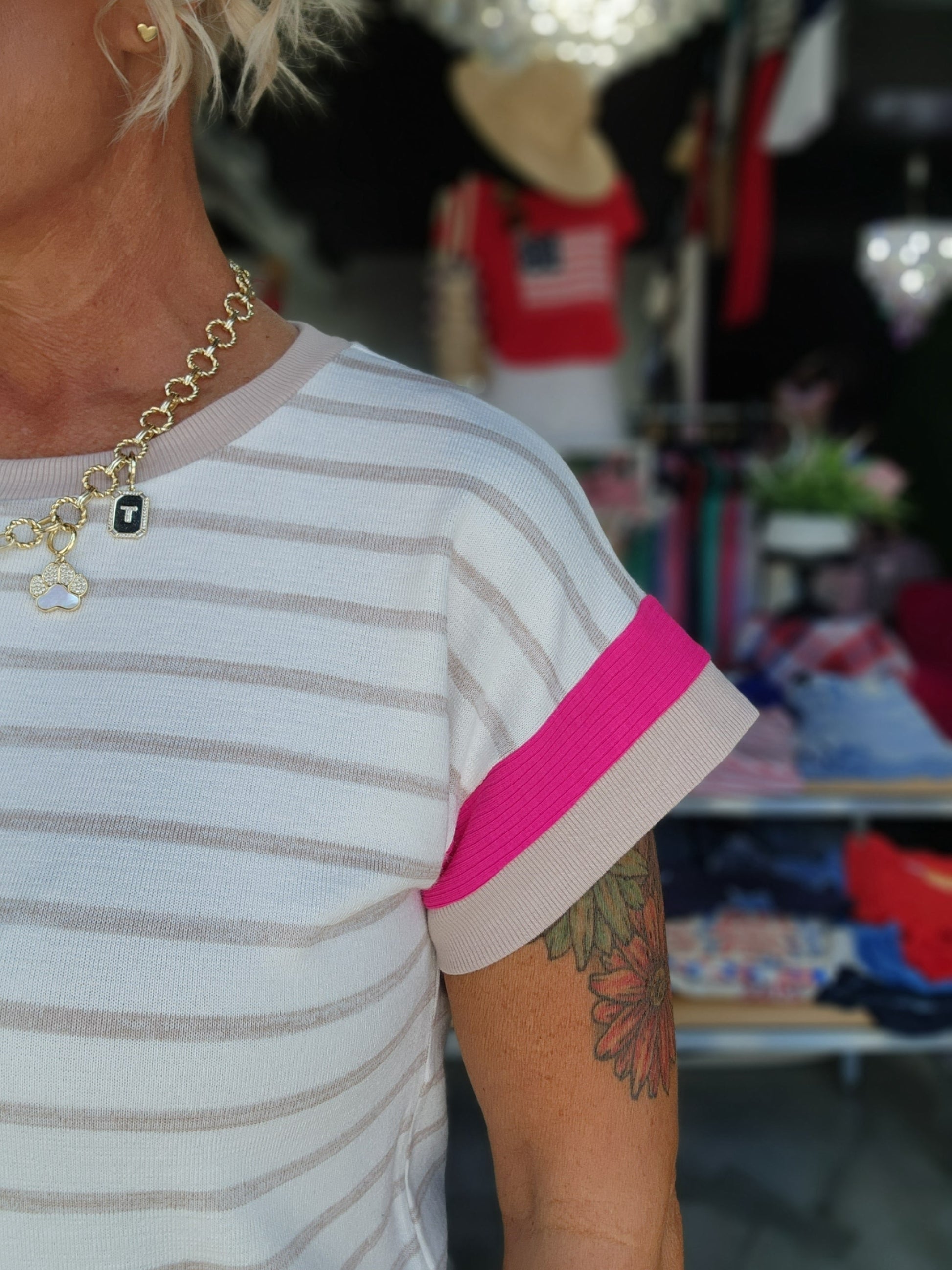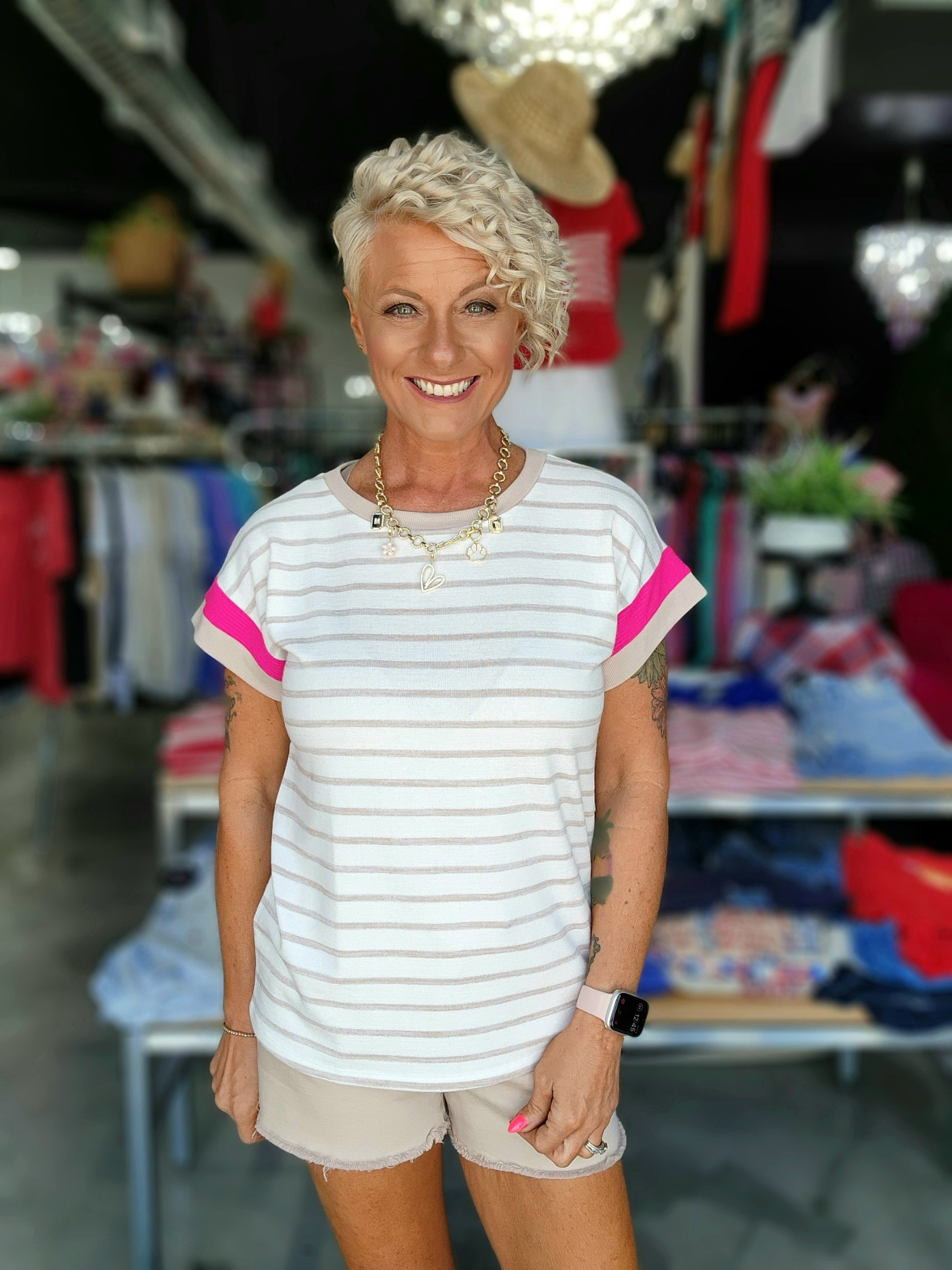 Elevate your wardrobe with the Drifted Hues Short Sleeve Top, featuring a vibrant multi-color block design that adds a fresh, modern touch. Its extended short sleeves and textured knit fabric provide both comfort and style, making it perfect for day-to-night wear. This top effortlessly blends eye-catching color with a flattering fit, ensuring you stand out with ease.