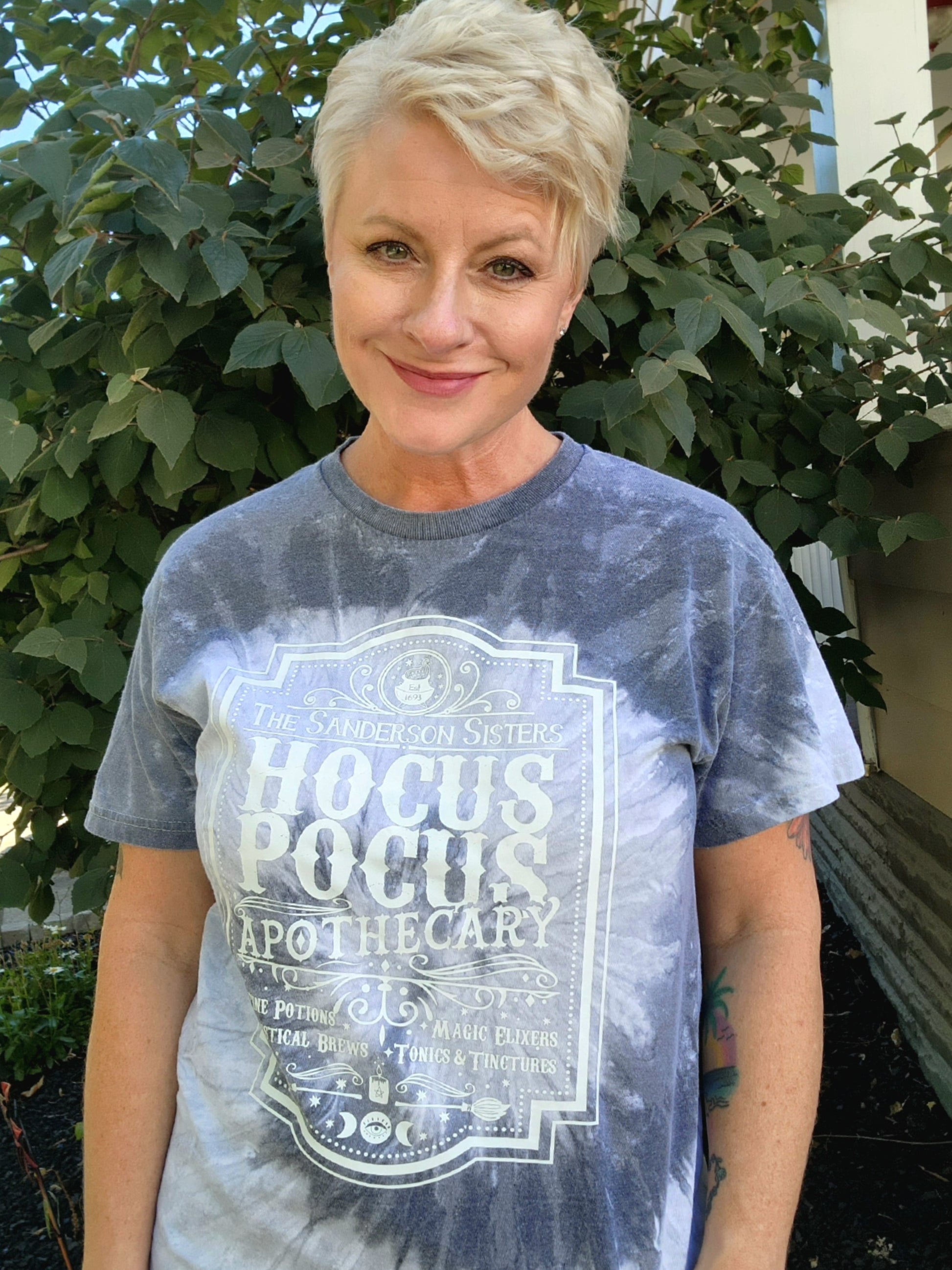 Show your love for the classic movie Hocus Pocus with this uniquely styled graphic tee. Featuring a tye dye design and central graphic, this tee is sure to make a statement. Perfect for any fan or lover of the Halloween season.