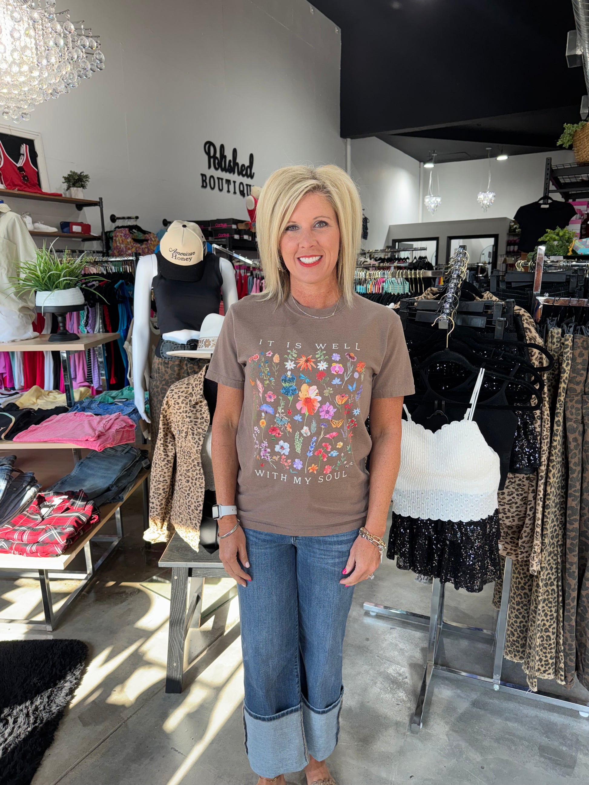 Wear your faith proudly with the It is Well With My Soul Graphic Tee. This inspiring shirt serves as a daily reminder to find peace and strength in every circumstance. Crafted for comfort and style, it uplifts your spirit while making a meaningful statement. Perfect for anyone seeking encouragement and a bold expression of hope.