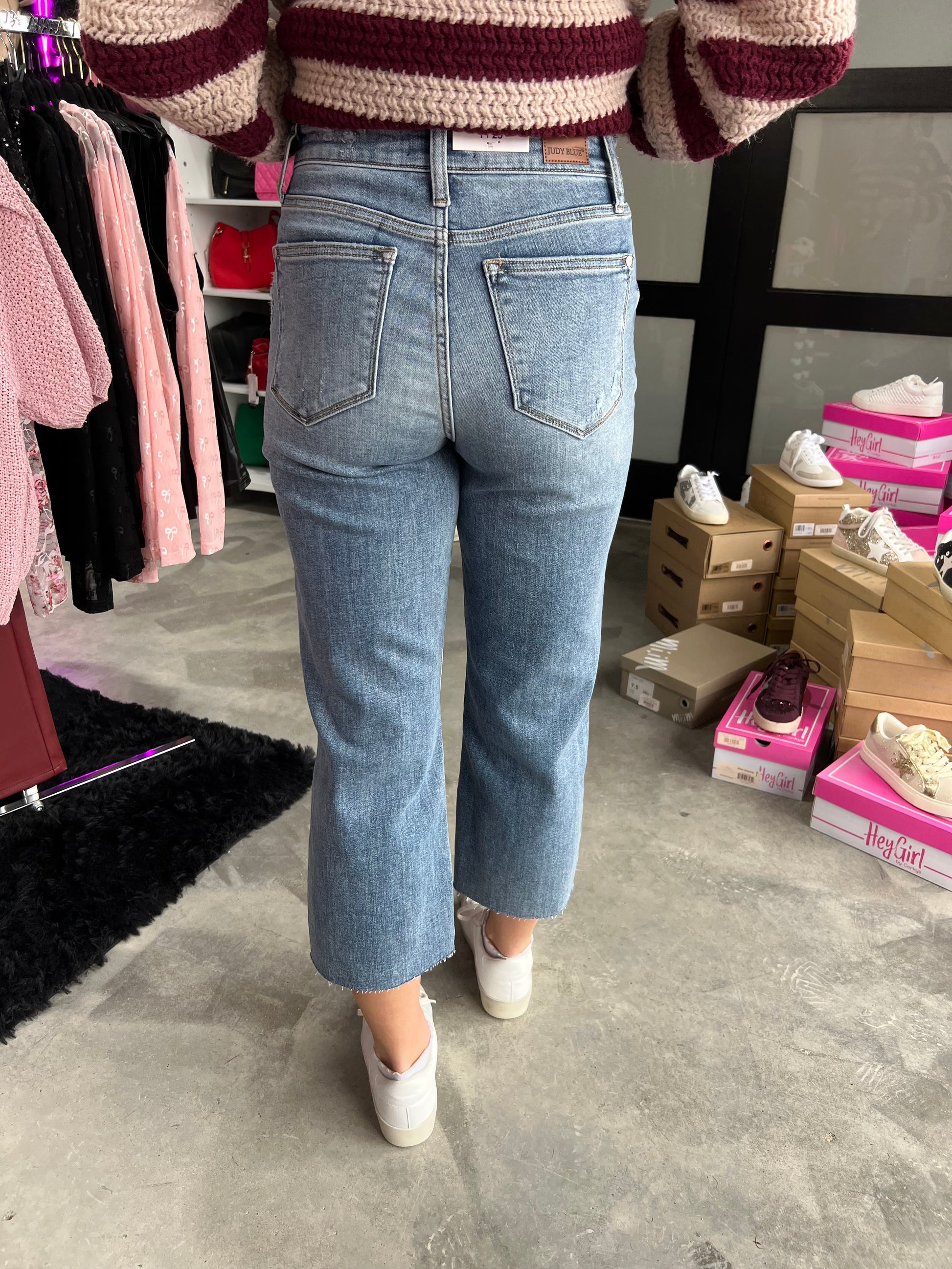 These Judy Blue High Waist Destructed Wide Leg Crop Jeans feature a high waist for a flattering fit. The destructed denim and light wash add a touch of edge, while the cropped and wide leg design make them perfect for any occasion.