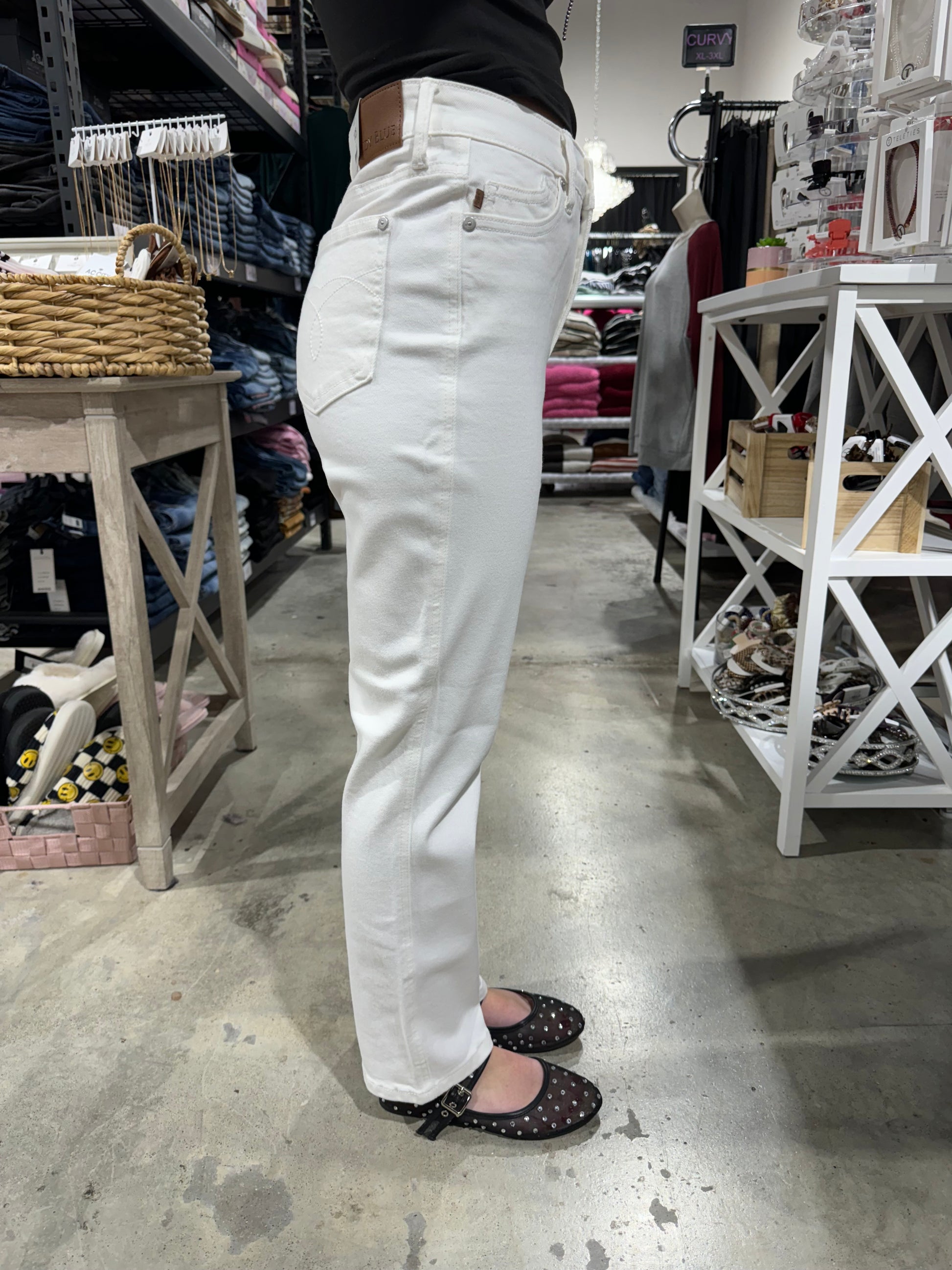Effortless elegance meets everyday comfort in this high-waist straight ankle jean. The flattering tummy control design smooths your silhouette while the crisp white wash pairs seamlessly with anything in your closet. Dress it up with heels and a blazer or keep it casual with sneakers and a tee—this timeless staple works for every occasion.