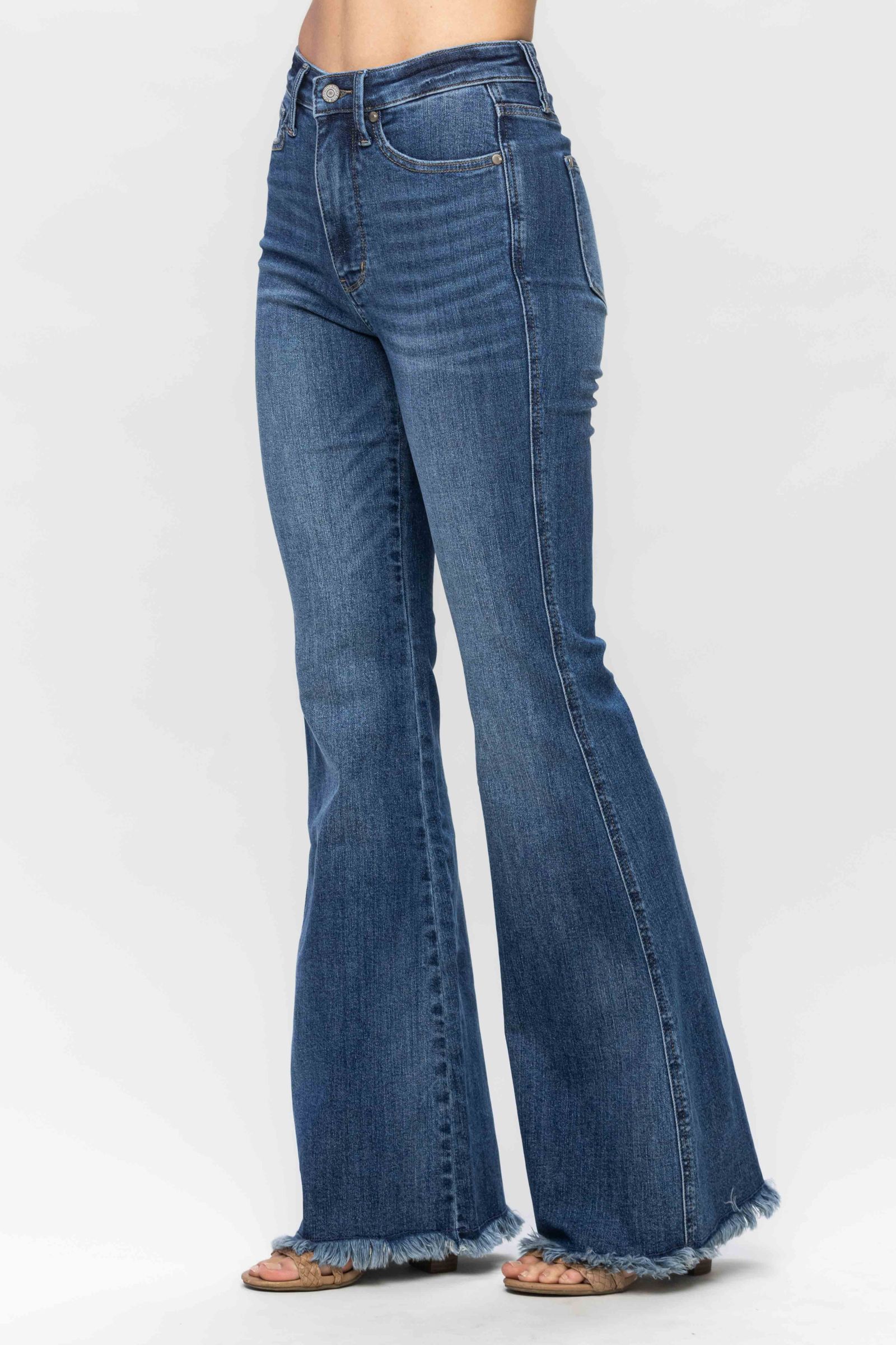 Judy Blue High Waist Tummy Control Fray Hem Flare Jeans