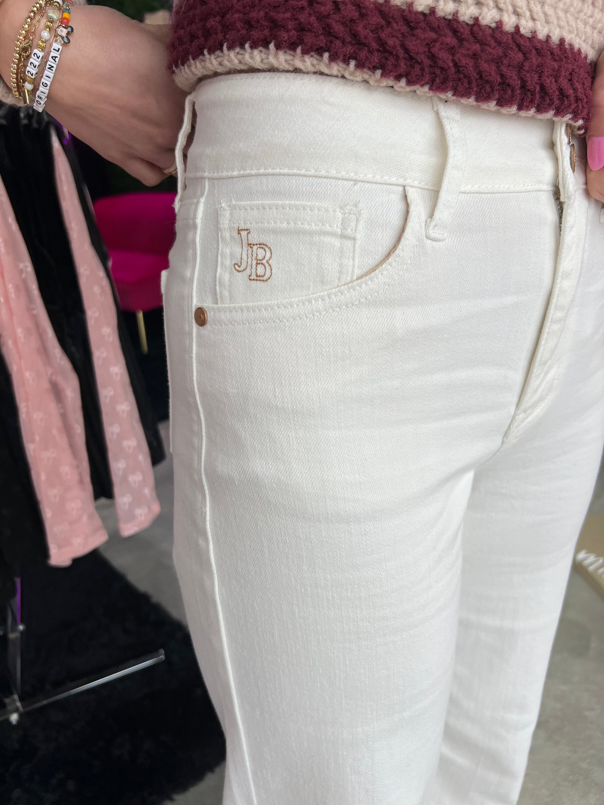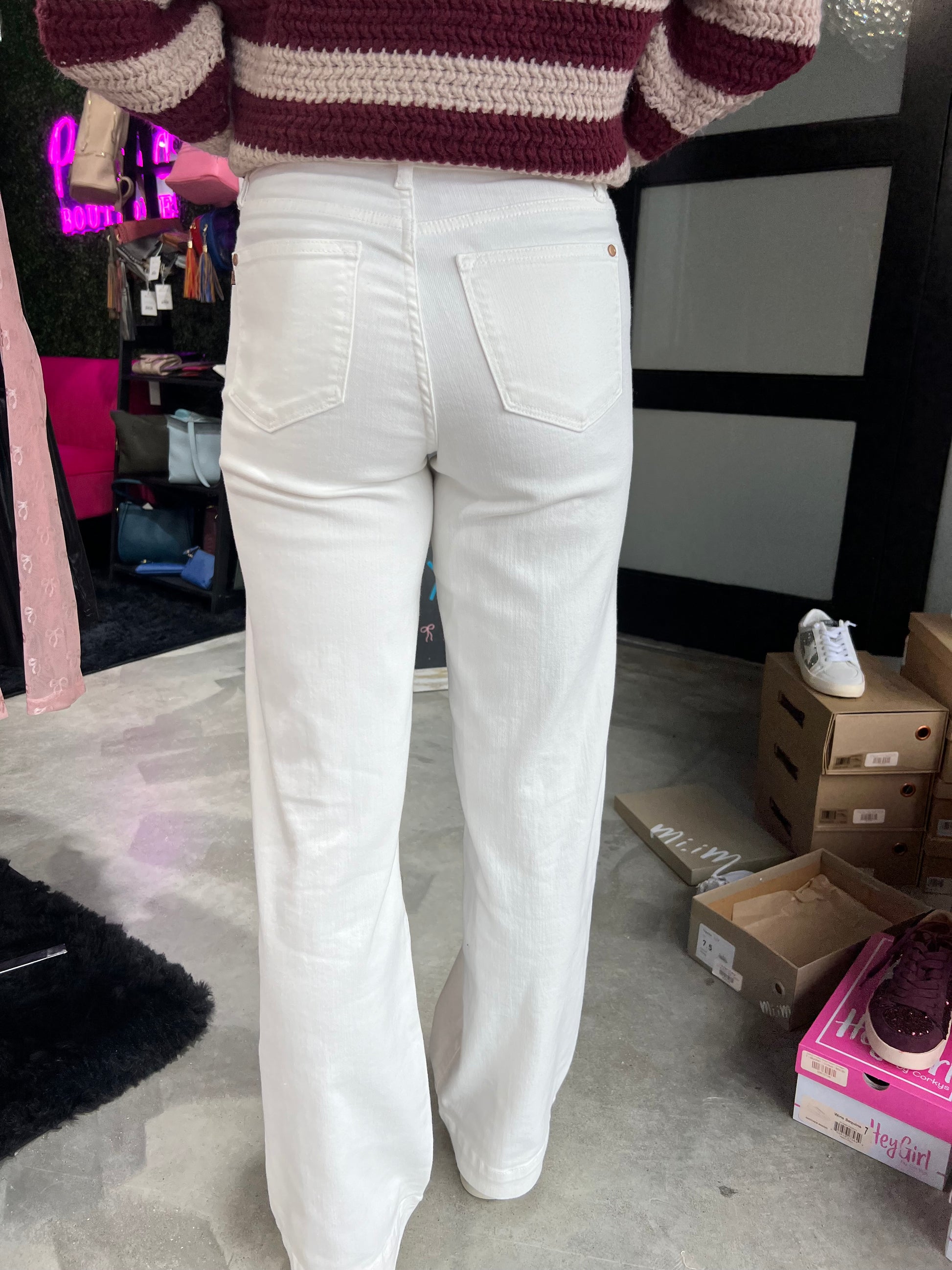 Judy Blue HW Double Button Embroidery Trouser Wide Leg Jeans