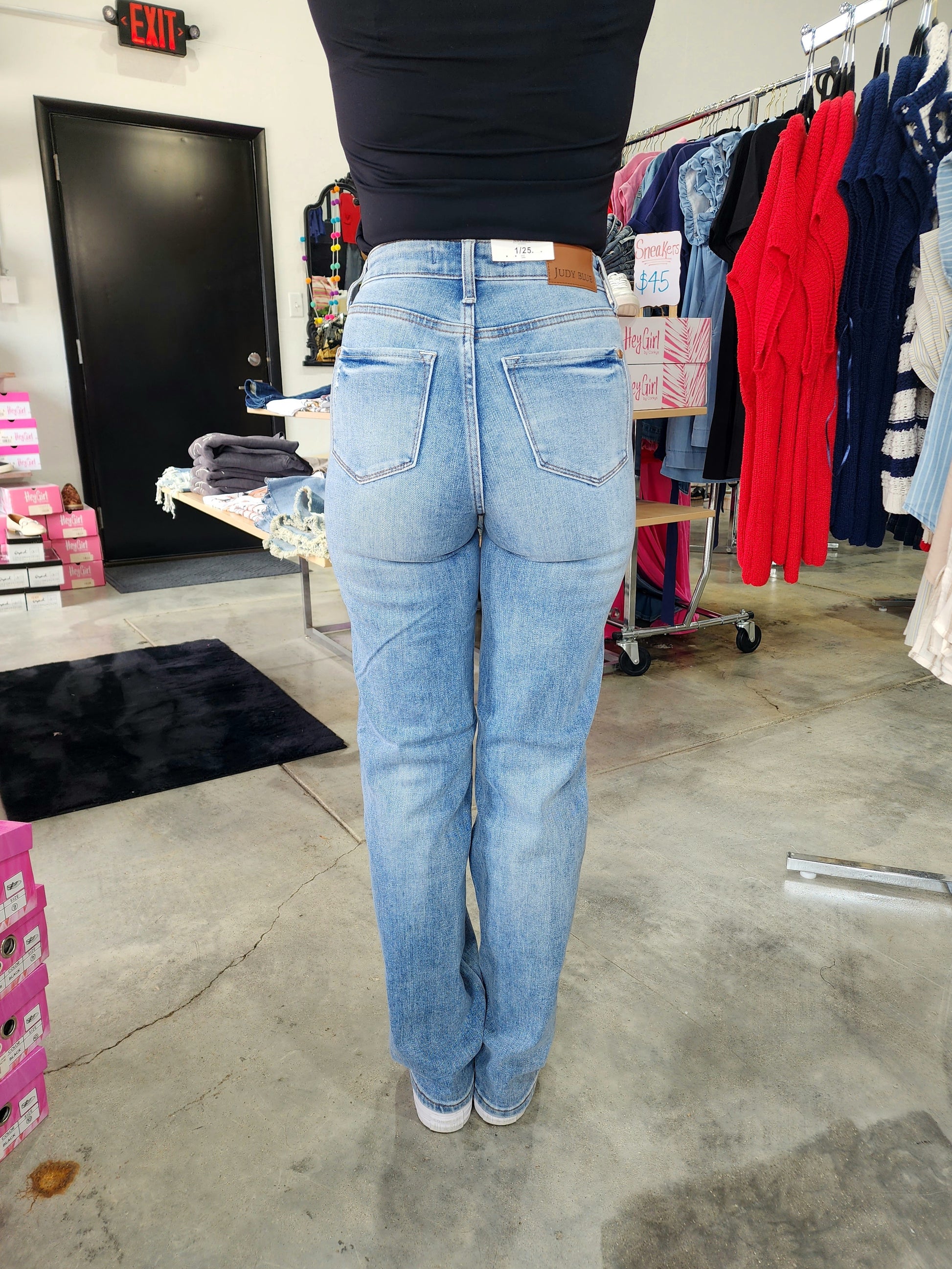 Say hello to your closet's new BFF! These Judy Blue jeans bring the high-waisted magic with tummy-smoothing superpowers that'll have you doing confidence twirls. The clean medium blue denim (zero rips, zero problems!) pairs with literally everything, while the straight leg silhouette keeps things classically cool.