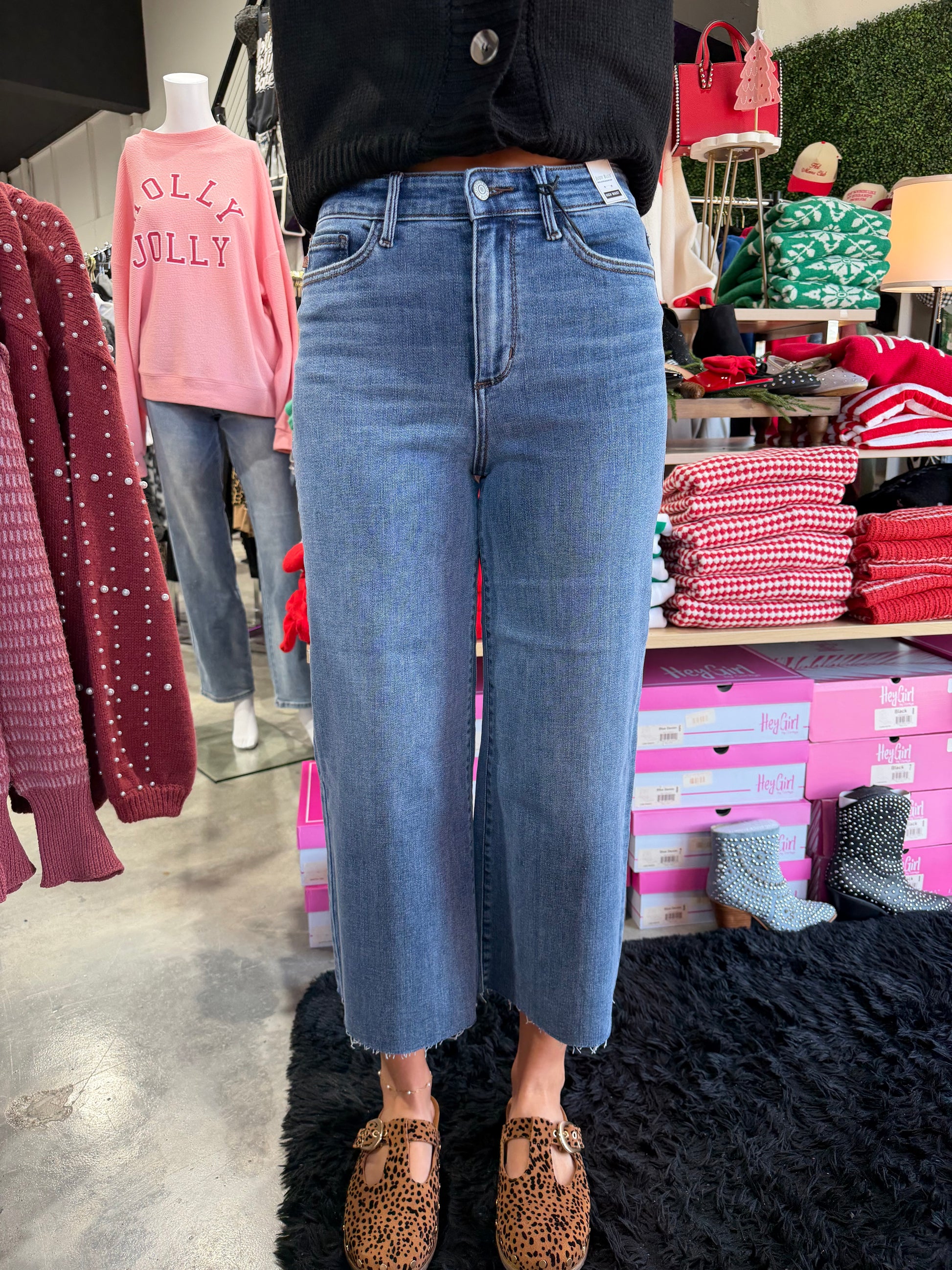 The Judy Blue HW Wide Crop Classic Raw Hem is your year-round essential. This high-waisted, wide-leg crop features a raw hem that balances timeless style with modern edge. Versatile enough to wear through every season and pair with virtually anything in your closet, it's the denim foundation that supports your unique style.