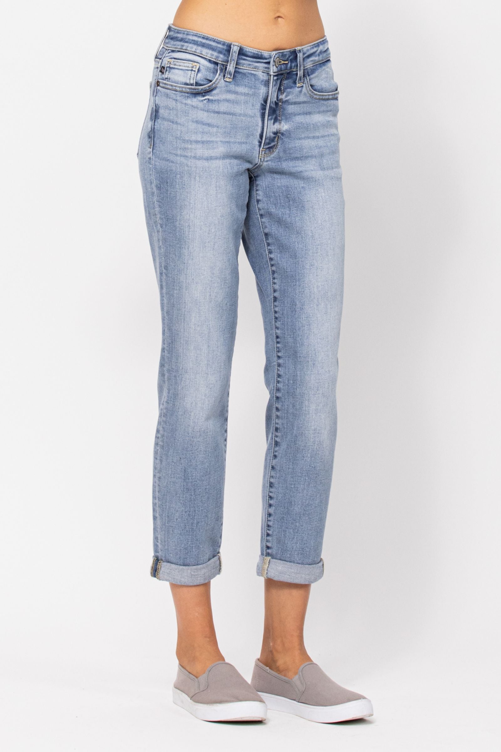 Judy Blue Mid Rise Bleach Wash Boyfriend Jeans