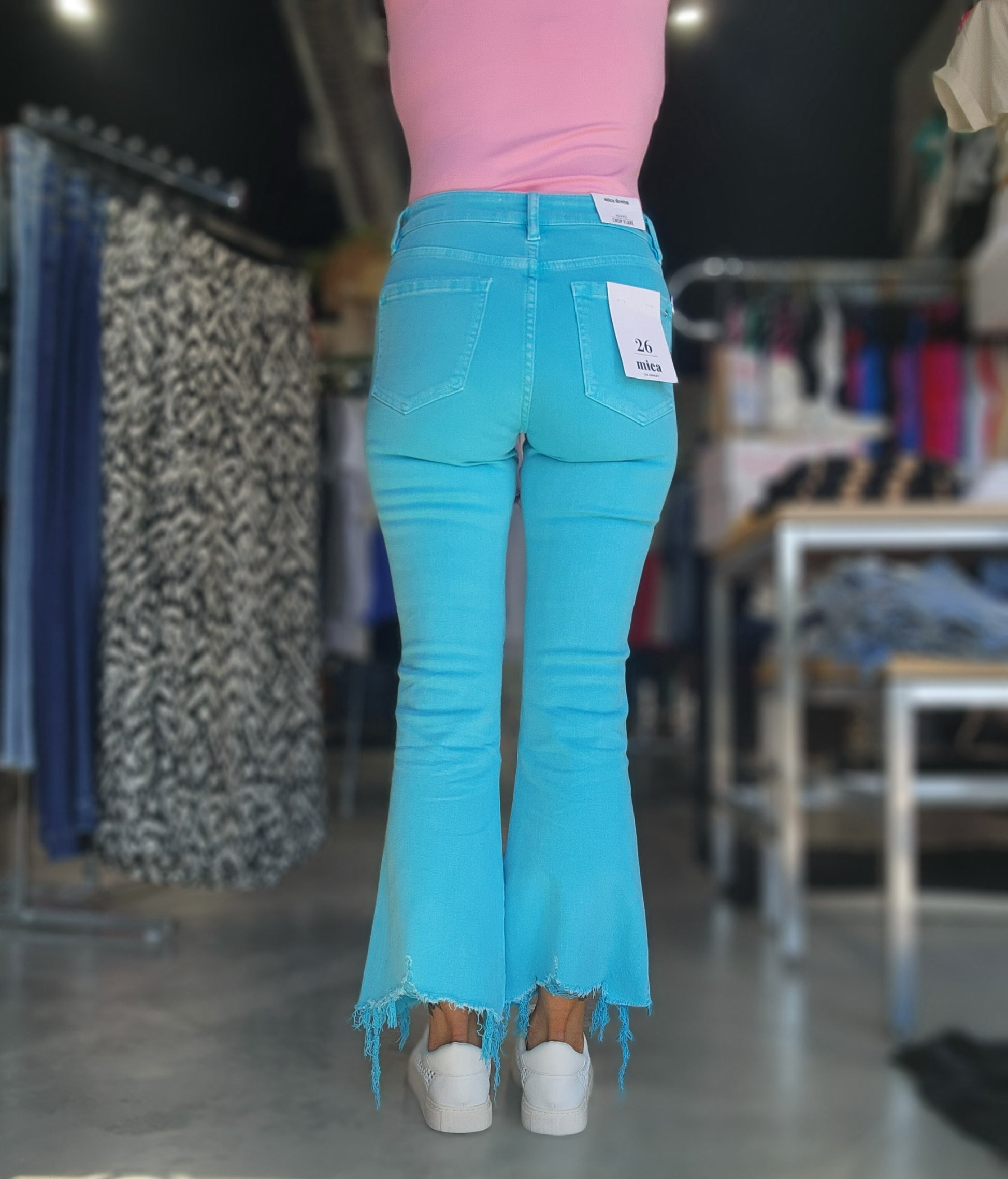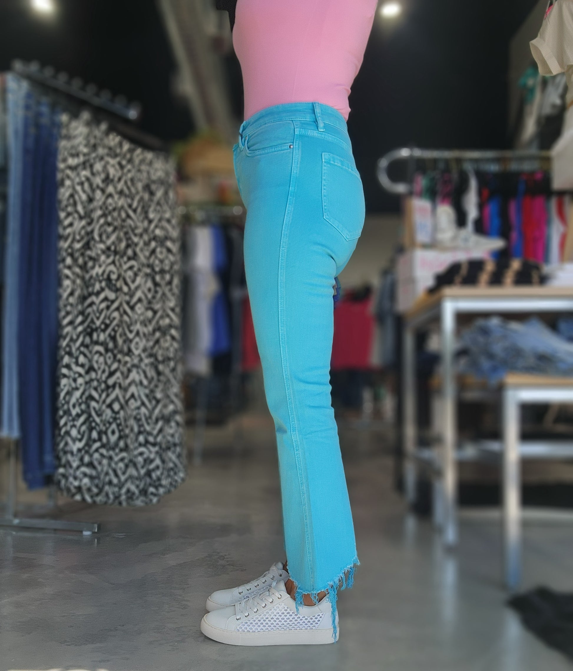 Step into style with the Mica High Rise Crop Flare Denim Jeans! Featuring a flattering high-rise fit and a playful cropped leg that flares just enough to catch the eye, these jeans come in a stunning turquoise denim that adds a splash of fun to any outfit. Perfect for those who love a little twist on classic denim, they’re ready to brighten your wardrobe and your day.