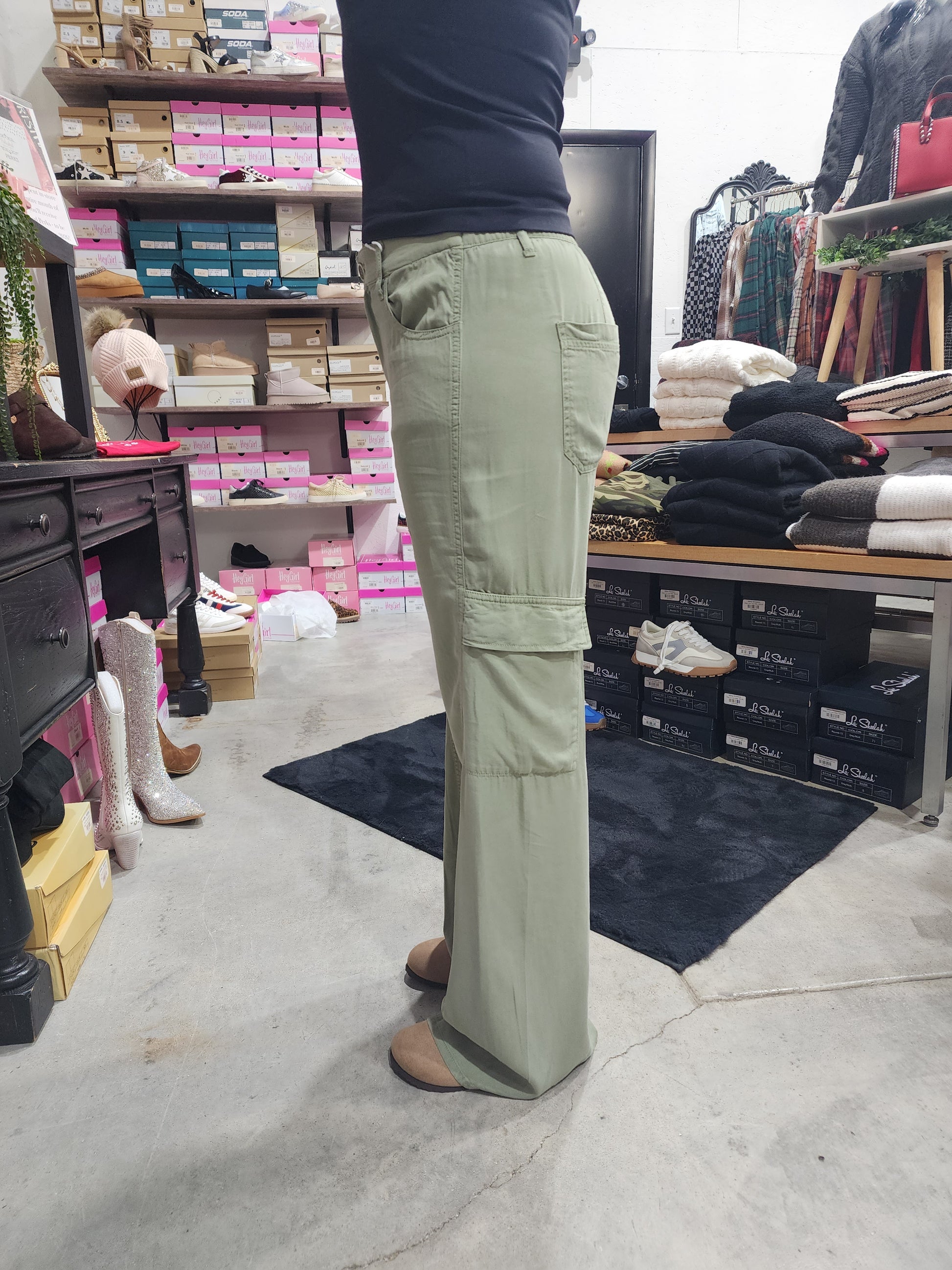 Elevated comfort meets utility in these high-rise cargo pants. Crafted in soft sage green Tencel, they feature practical cargo pockets and a relaxed ankle-wide fit that works with any wardrobe. The high rise sits perfectly at the waist for a flattering, modern silhouette. Versatile enough for casual days or dressed up for weekend plans.