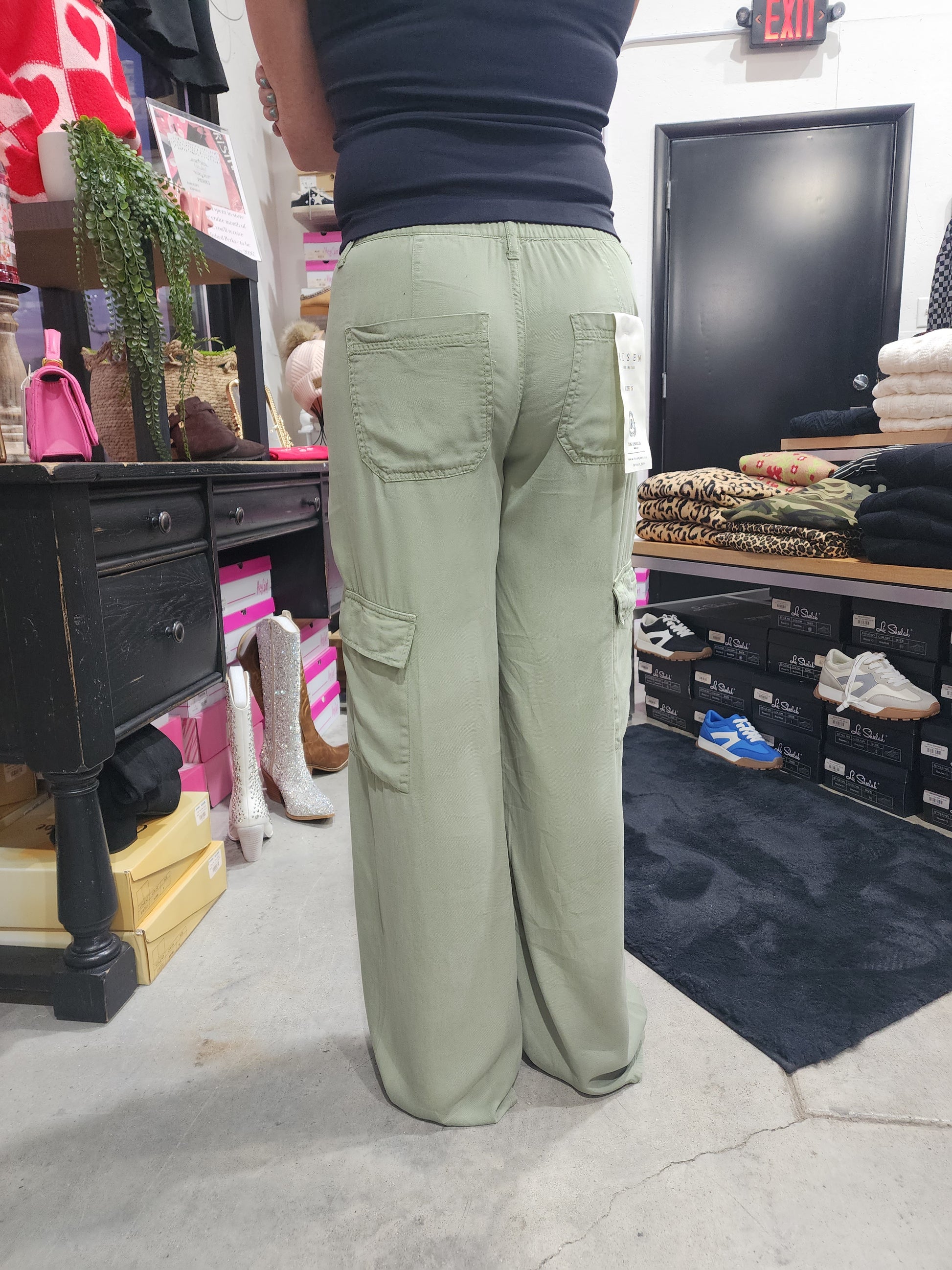 Risen High Rise Ankle Wide Tencel Cargo Pants
