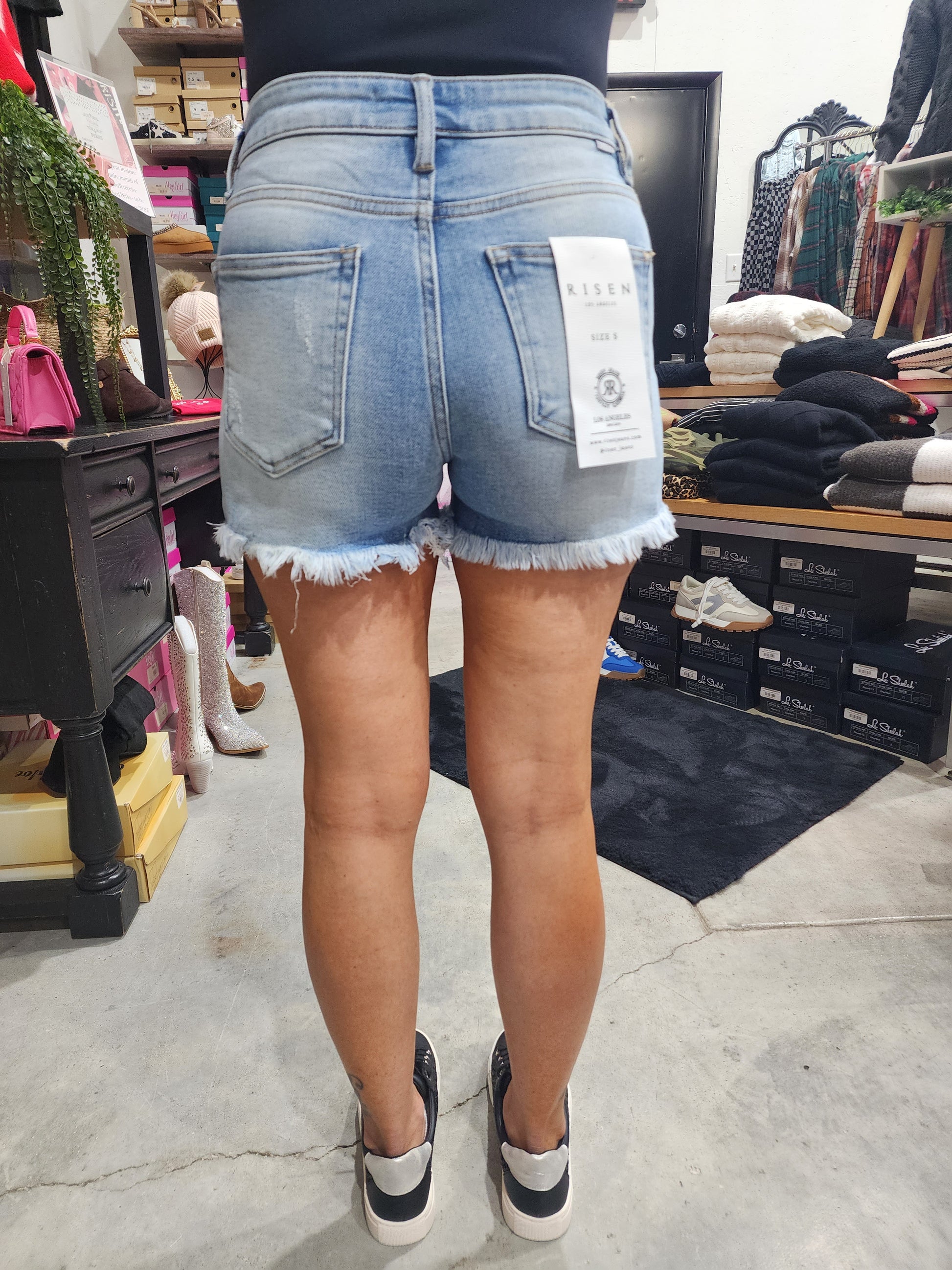 Risen High Rise Side Slit Shorts feature a flattering high-rise cut with trendy side slits for a modern edge. The light wash denim offers versatile styling for casual looks. Perfect for pairing with crop tops, oversized tees, or layered pieces.