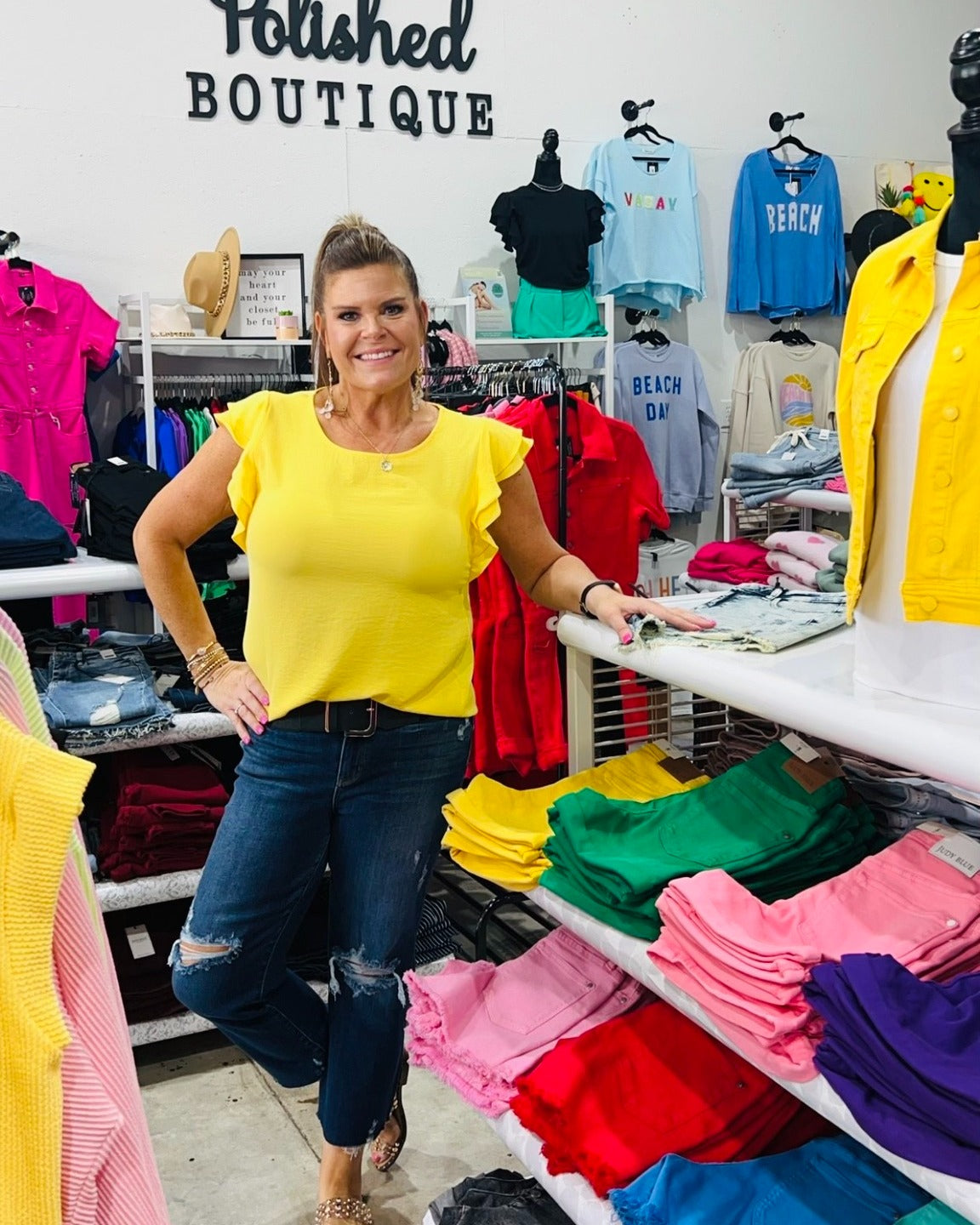 Get ready to make a statement with our Selina Top! Available in banana or silver, this lightweight top features flutter sleeves for a touch of playfulness. Perfect for any occasion, it's the top that will have you both looking and feeling amazing!