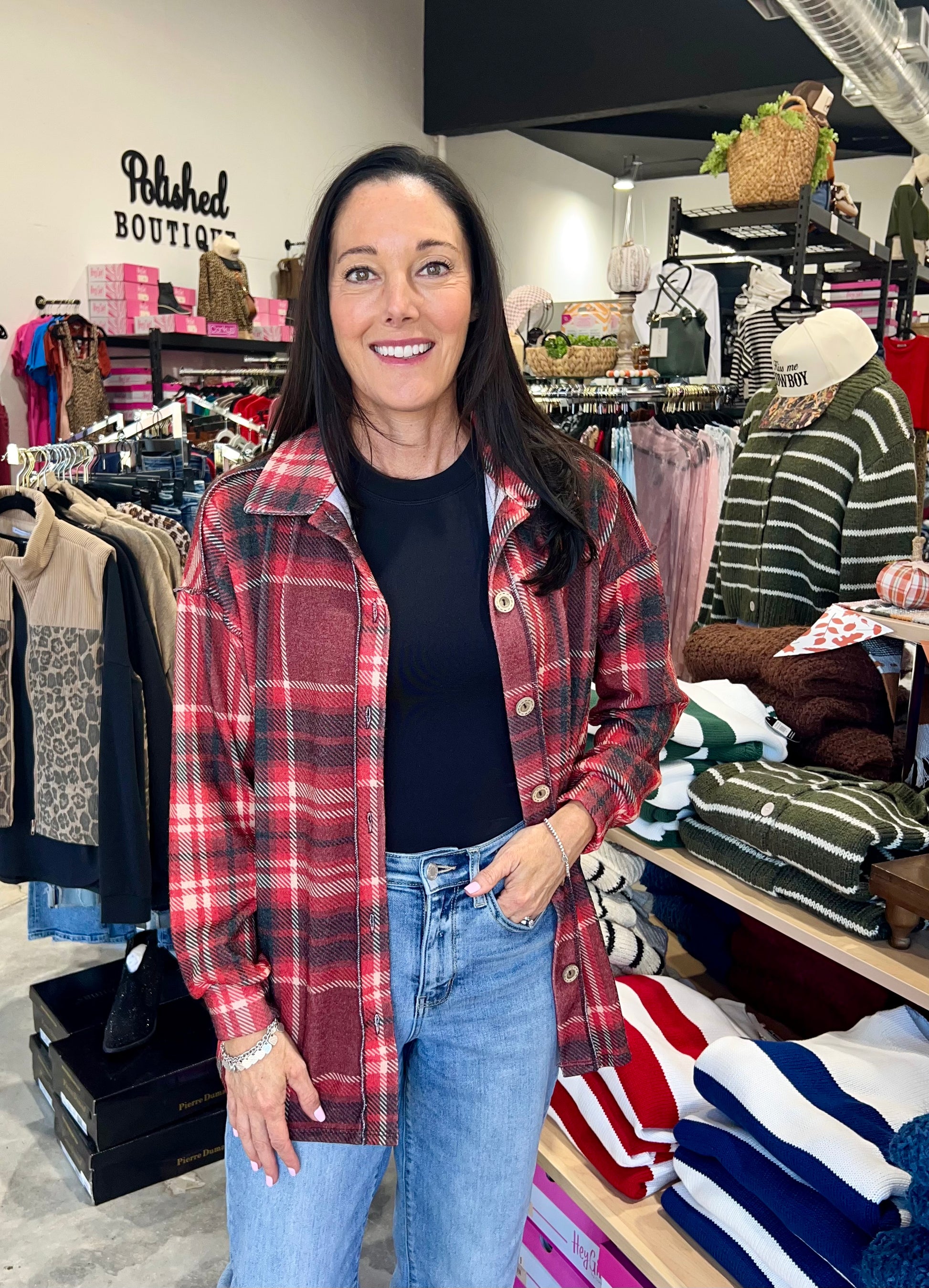 The Autumn Shacket combines classic plaid design with a long sleeve, button-down silhouette for a timeless yet contemporary look. Its raw hem adds subtle edge, while the breathable fabric makes it ideal for layering throughout the cooler seasons. Perfect for transitioning between styles, this versatile piece balances comfort and structure with ease.