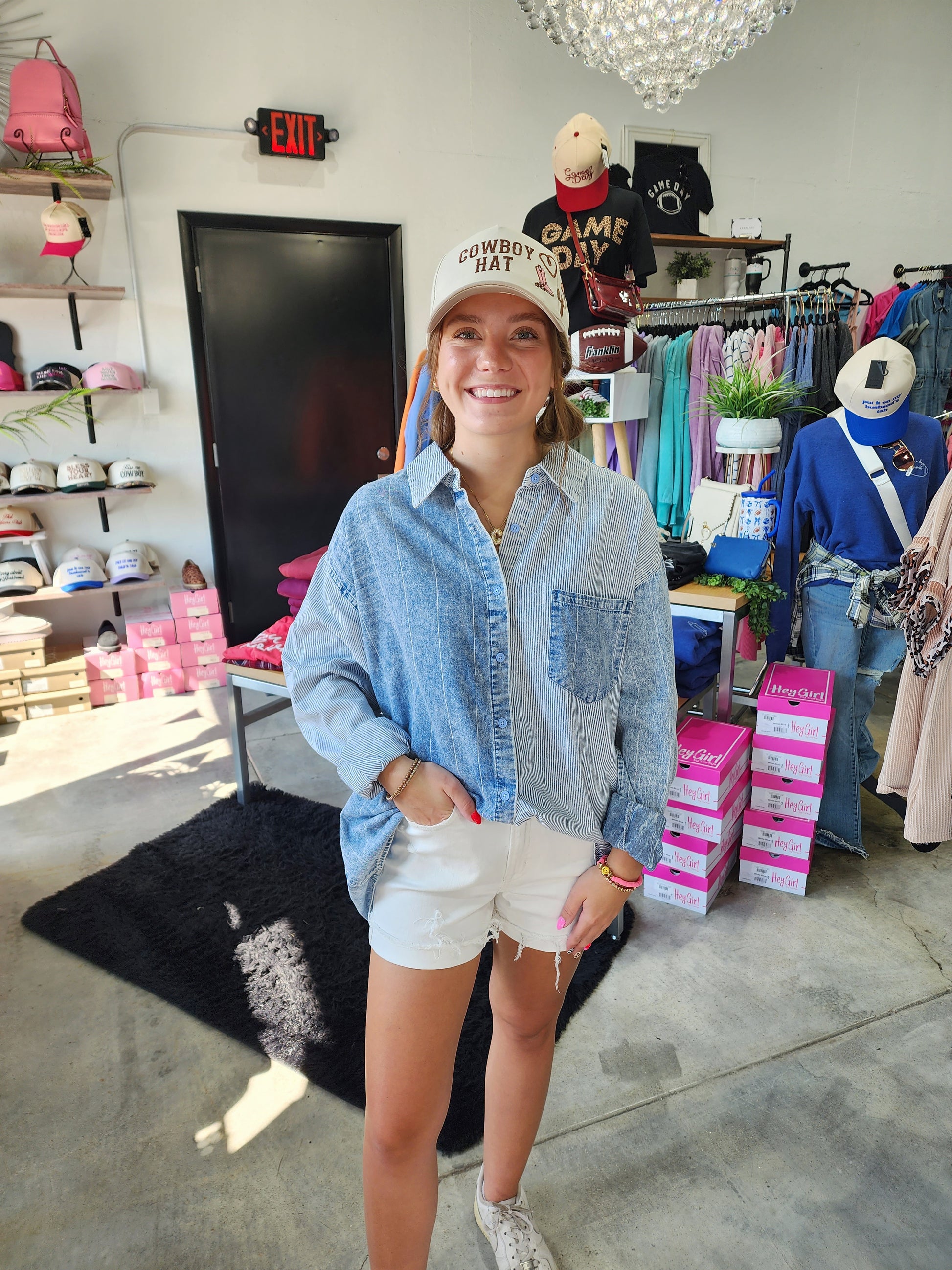 The Blue Horizon Long Sleeve Top offers a relaxed fit for all-day comfort. Featuring a soft mineral wash in light indigo, this striped top combines style with subtle colorblocking and a convenient front pocket. Perfect for casual wear, it seamlessly blends comfort and effortless design.