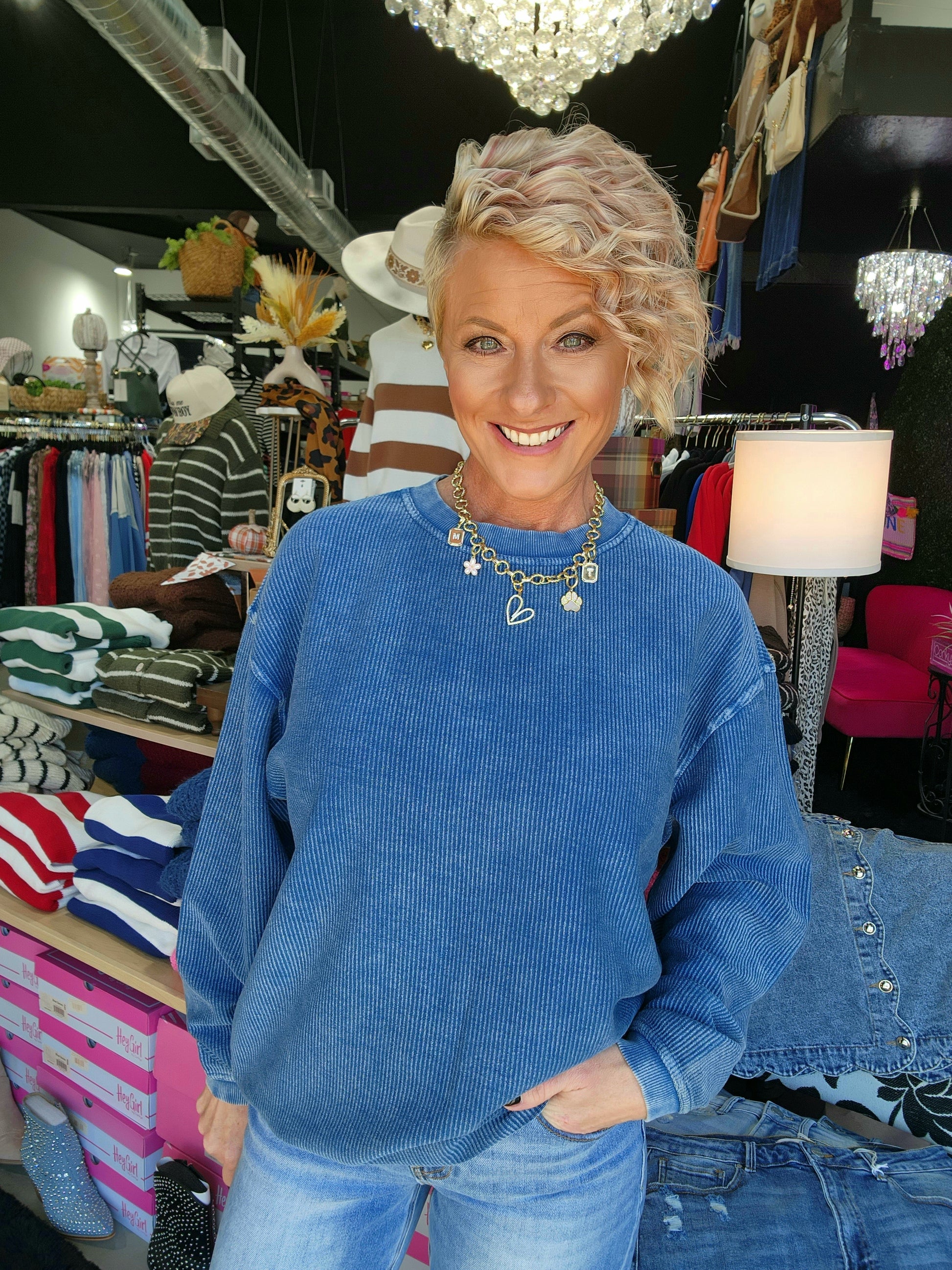 Warm up to The Ellison Sweatshirt! The luxe corded fabric keeps you cozy and comfortable, and its classic crew neck styling is sure to impress. Fashionable and functional, this sweatshirt is the perfect way to brave any chill in style!