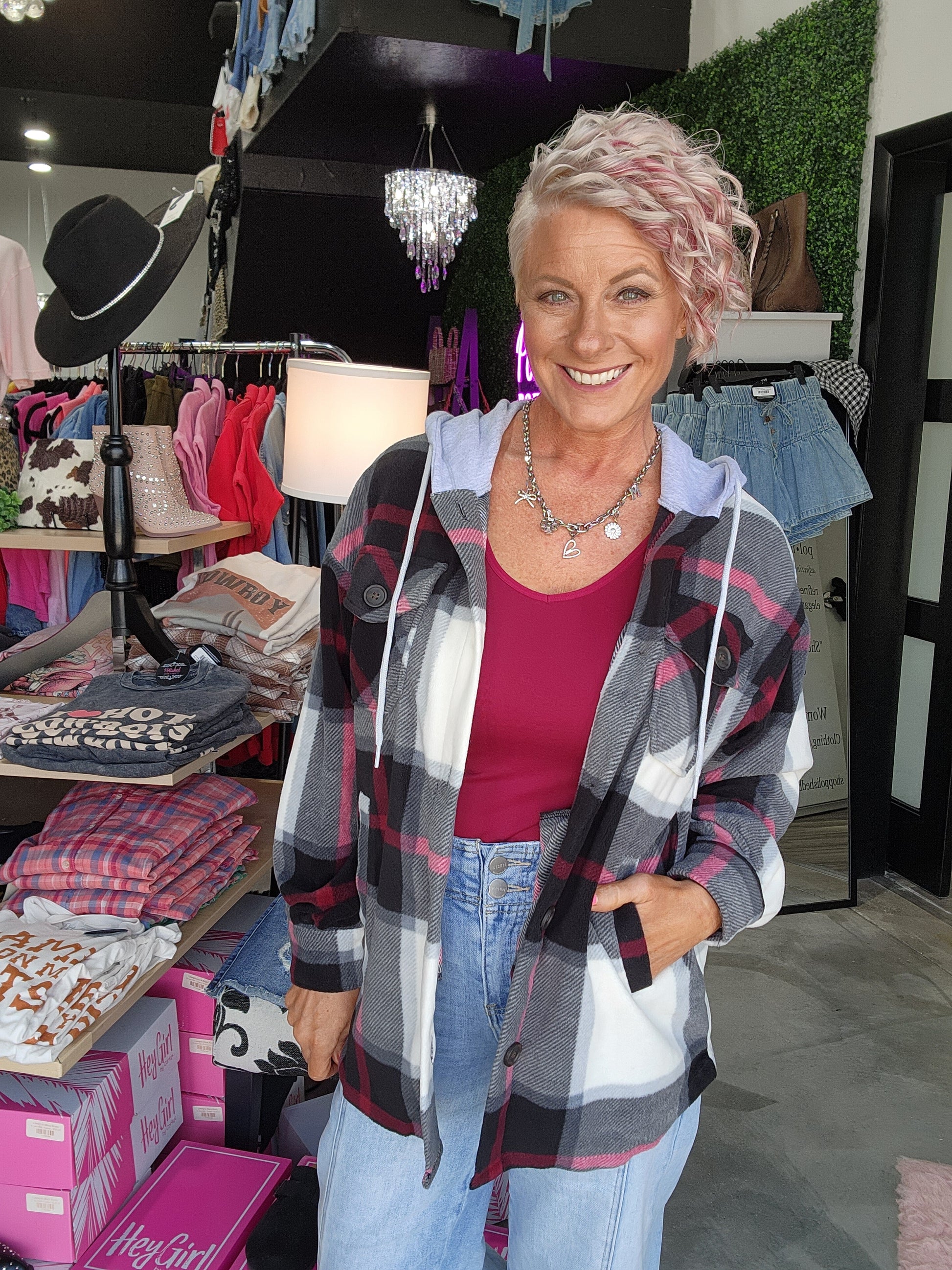 The Hooded Fleece Shacket combines warmth and comfort with casual style. This shacket buttons up the front and has convenient side pockets, it’s perfect for layering on chilly days. Whether you're heading out or relaxing at home, this cozy shacket keeps you comfortably stylish all day long.