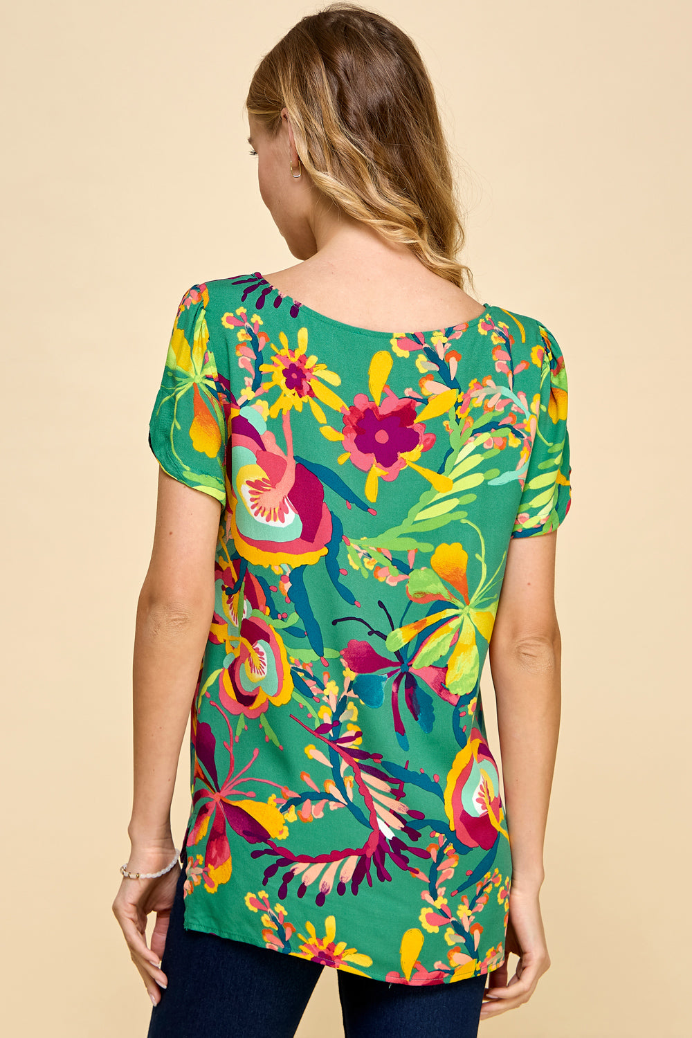 Upgrade your wardrobe with The Zoey Top, featuring a fun floral print perfect for spring and summer. Dress it up or down for any occasion and elevate your style game. Expertly crafted for versatility and style.
