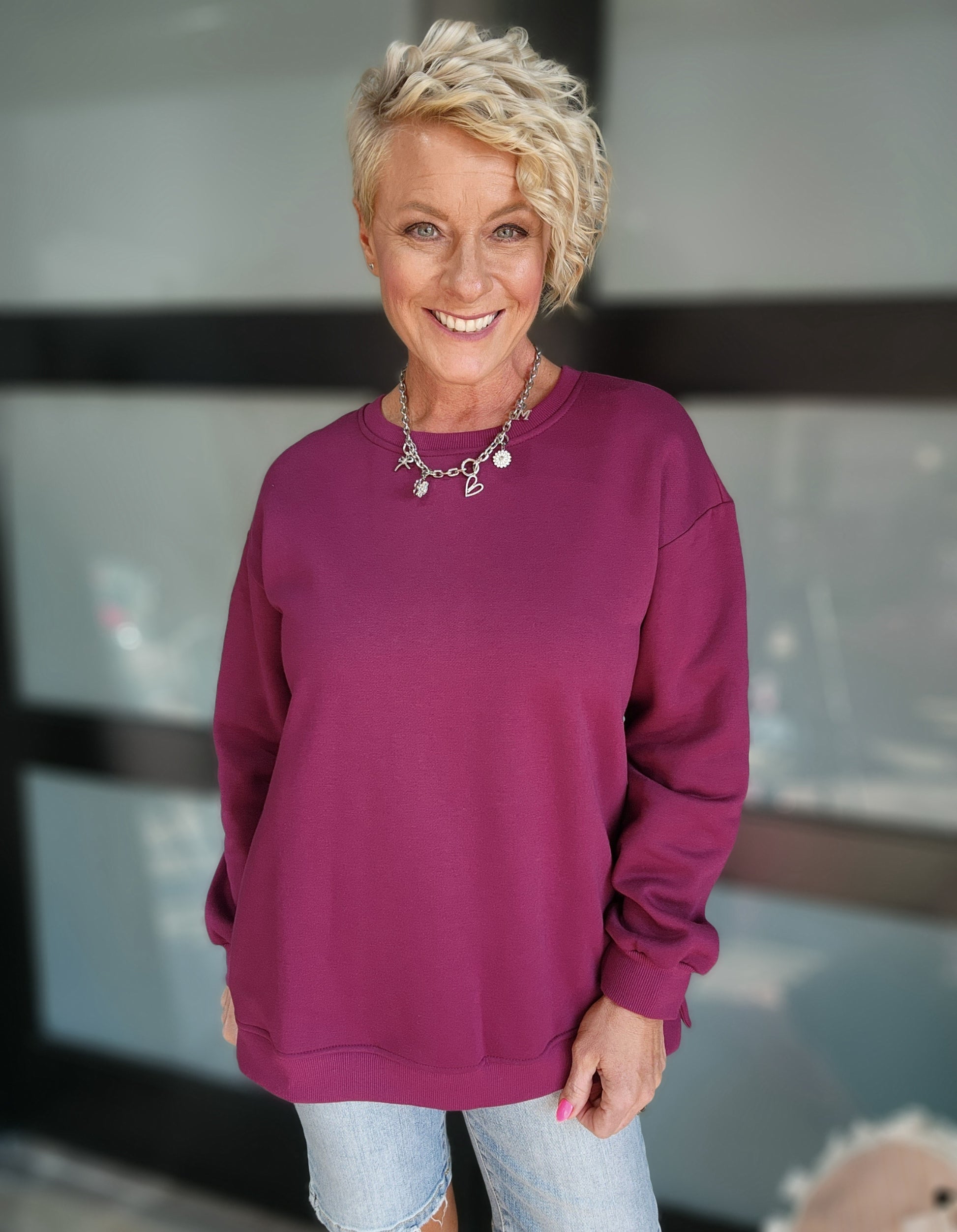 Experience ultimate comfort with The Izzy Sweatshirt, designed in an oversized, relaxed fit that drapes effortlessly. Its mid-thigh length offers extra coverage. Convenient side pockets add practicality without sacrificing style. Perfectly paired with leggings, this cozy sweatshirt ensures you stay comfortable and chic throughout your day.