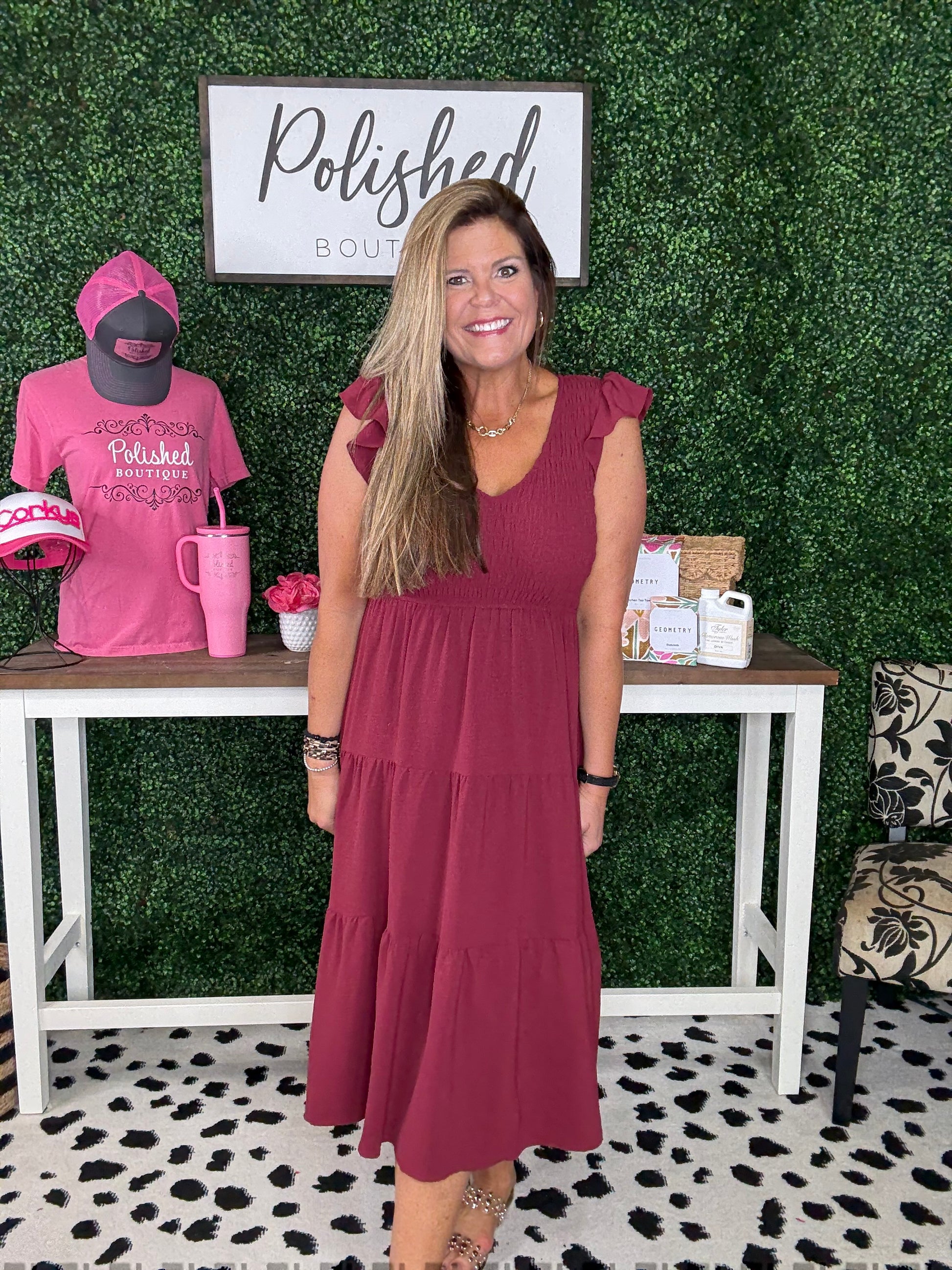 Introducing The Juliette Flutter Dress, a beautiful v-neckline midi/maxi dress with flutter mini sleeves. The smocked bodice provides a comfortable fit while the tiered midi skirt adds a touch of elegance. Perfect for any occasion, the lined skirt ensures a polished look. Update your wardrobe with this stunning dress.