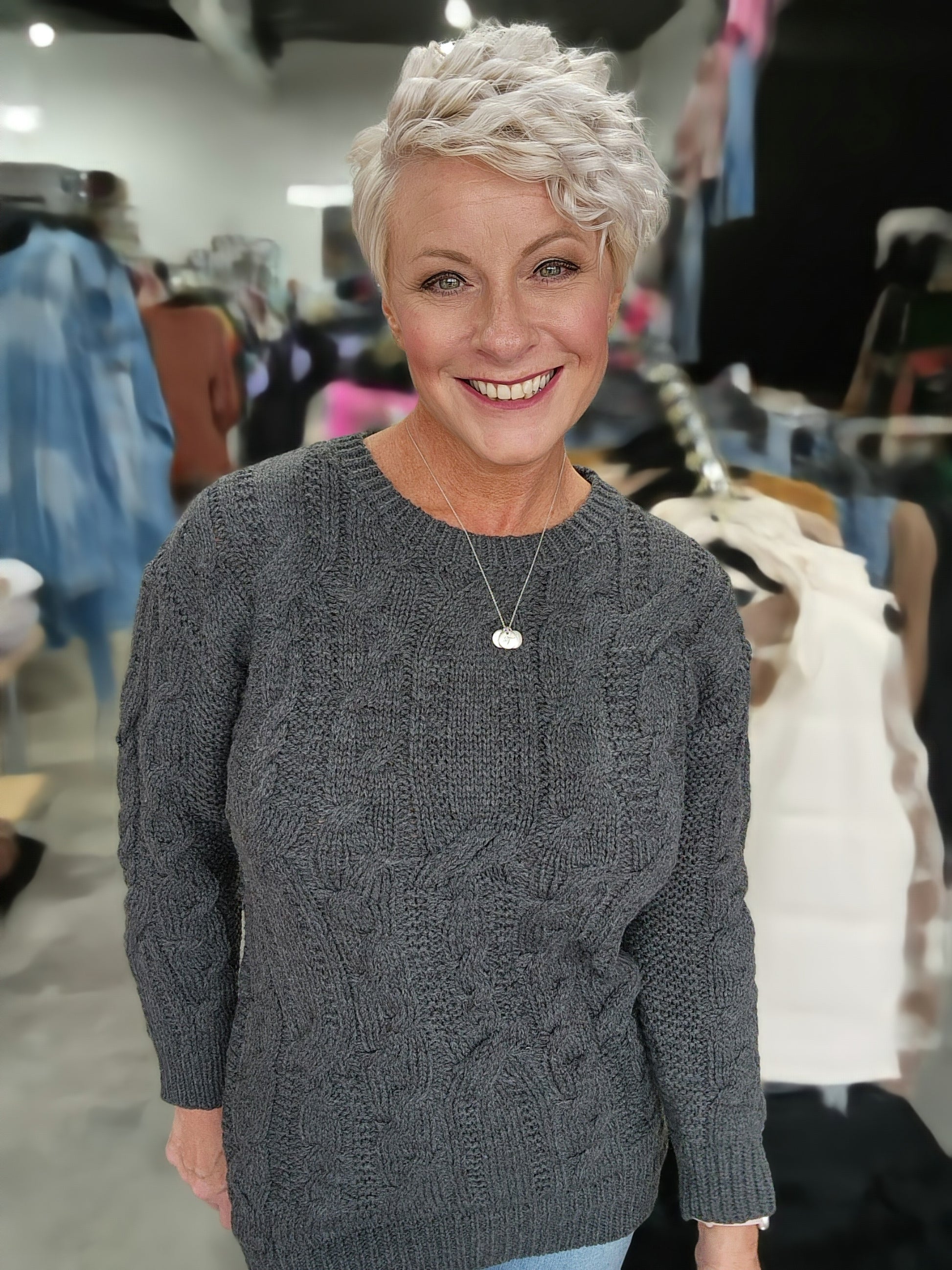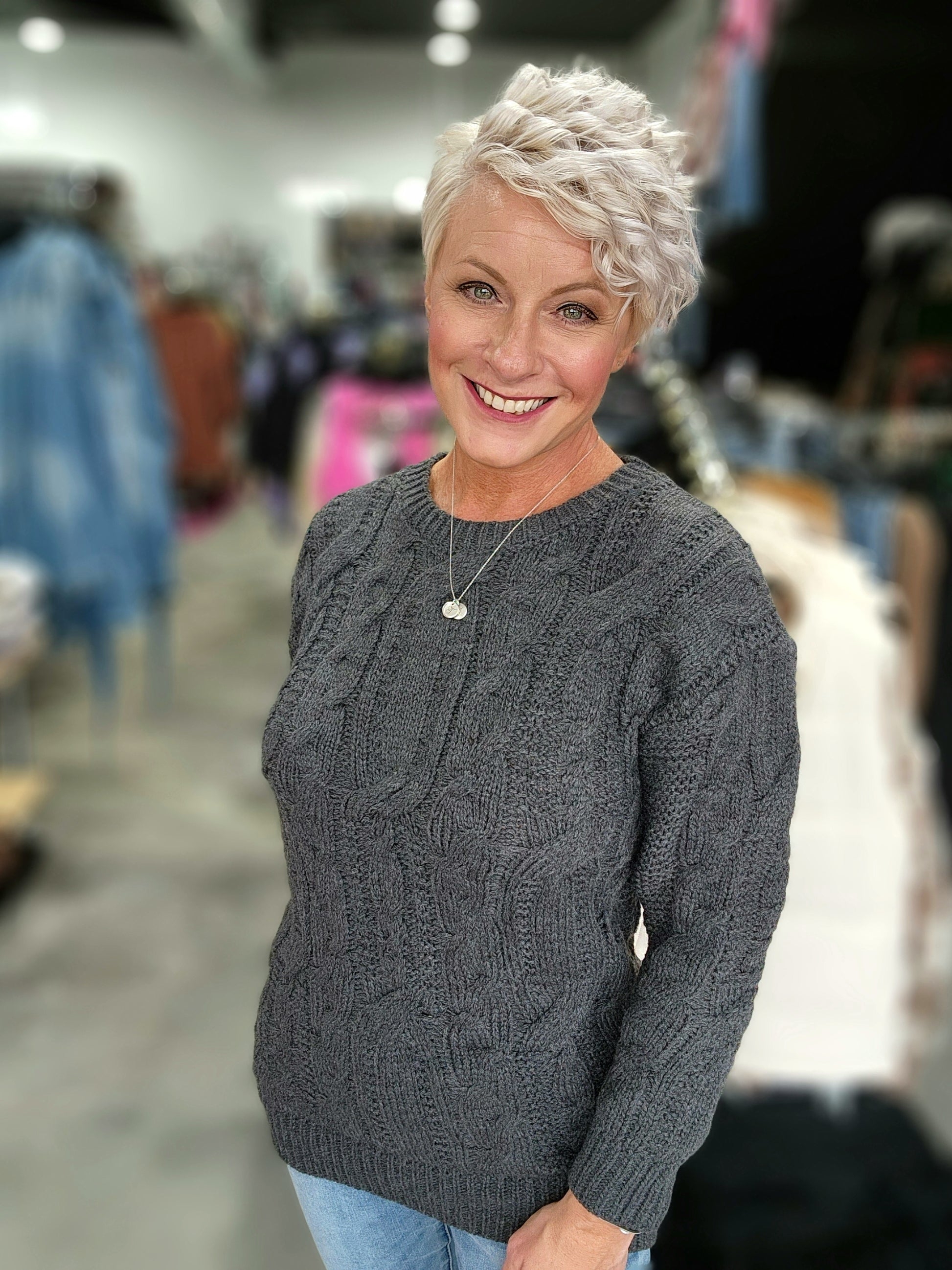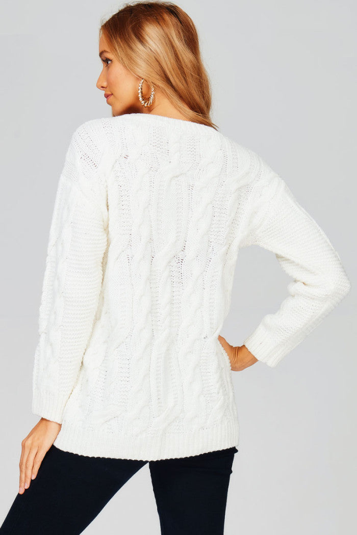 Elevate your winter wardrobe with The Magee Sweater. Crafted with a chunky knit and ribbed edges, this sweater offers both warmth and style. Its round neck and high to low hem provide a flattering silhouette, making it a must-have for your cooler weather looks.