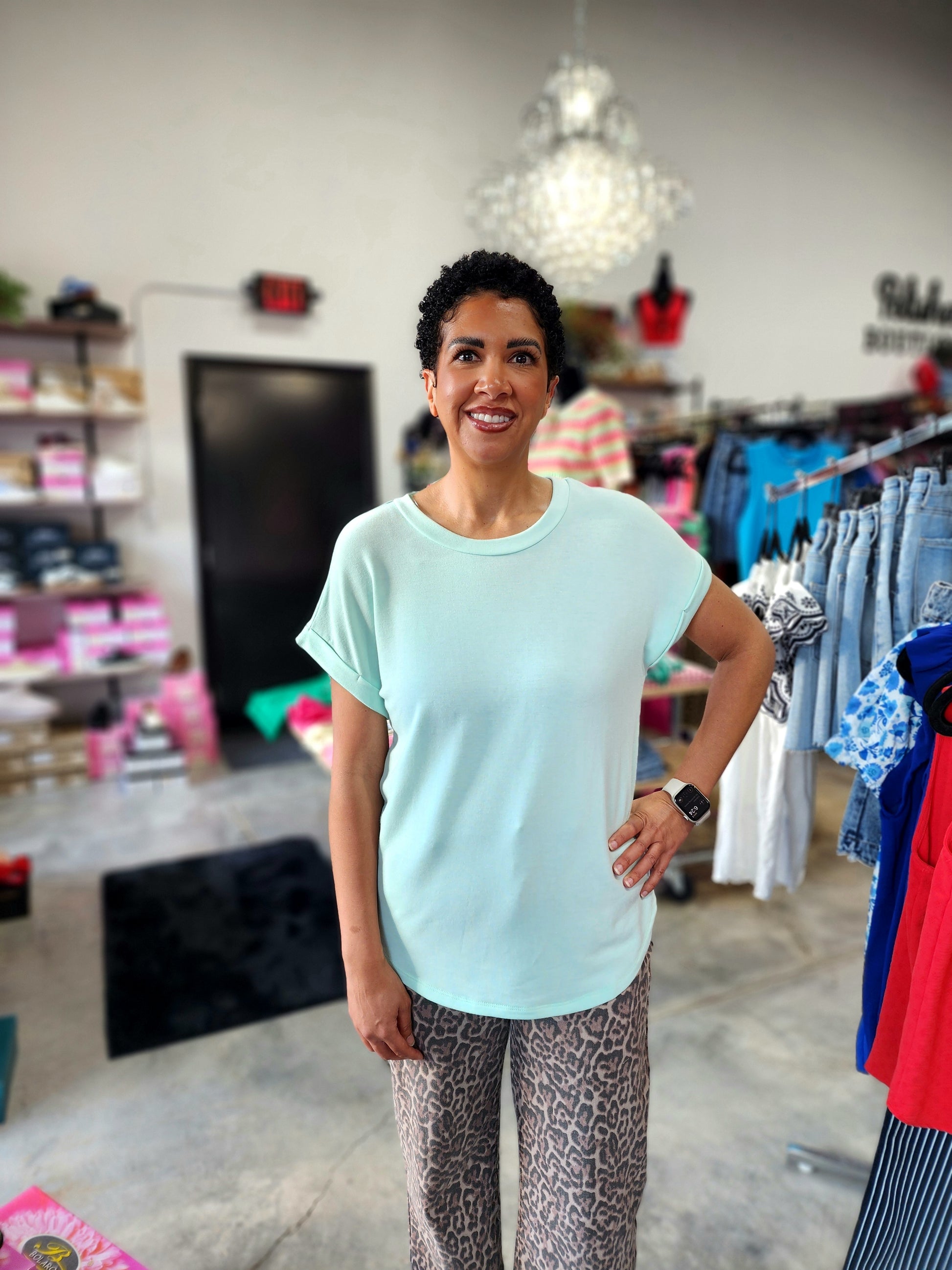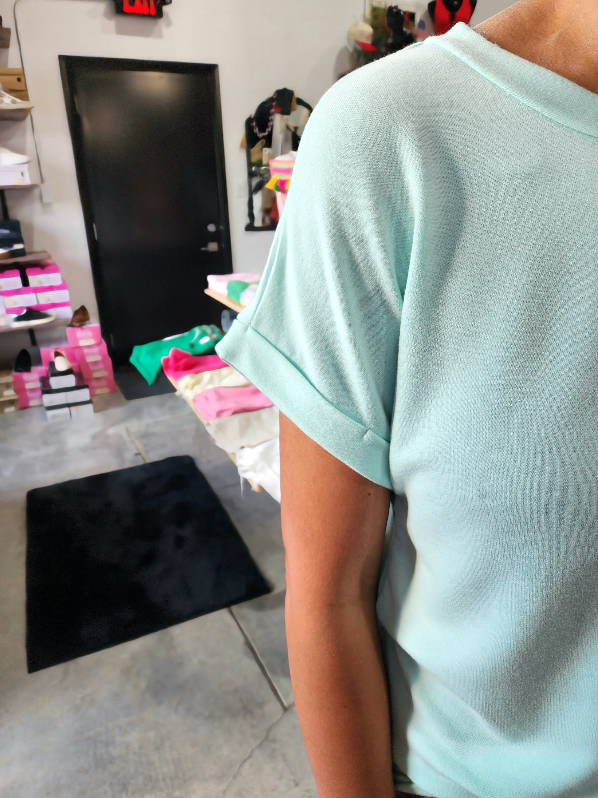 The Mint Edition Top offers a fresh, mint-colored look with a comfortable round neck and rolled sleeves for a relaxed style. Made from soft French terry fabric, it provides gentle warmth and breathability, perfect for everyday wear. This top combines casual comfort with subtle elegance, supporting your effortless, confident style.
