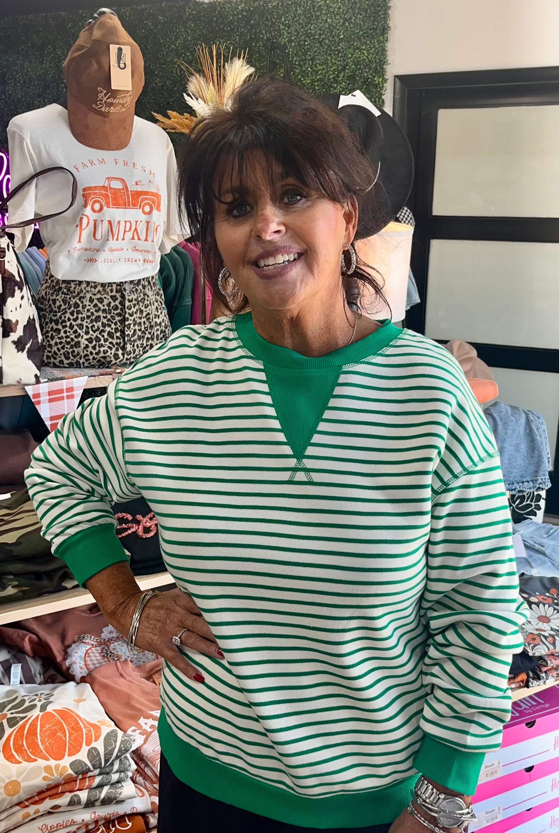 The Morgan Top features a relaxed, loose fit designed for effortless comfort. Its subtle striped pattern adds a touch of classic elegance, while the exposed seam detail introduces a modern, refined edge. Perfect for casual settings, this top combines sophistication with everyday ease, making it an ideal choice for polished, comfortable style.
