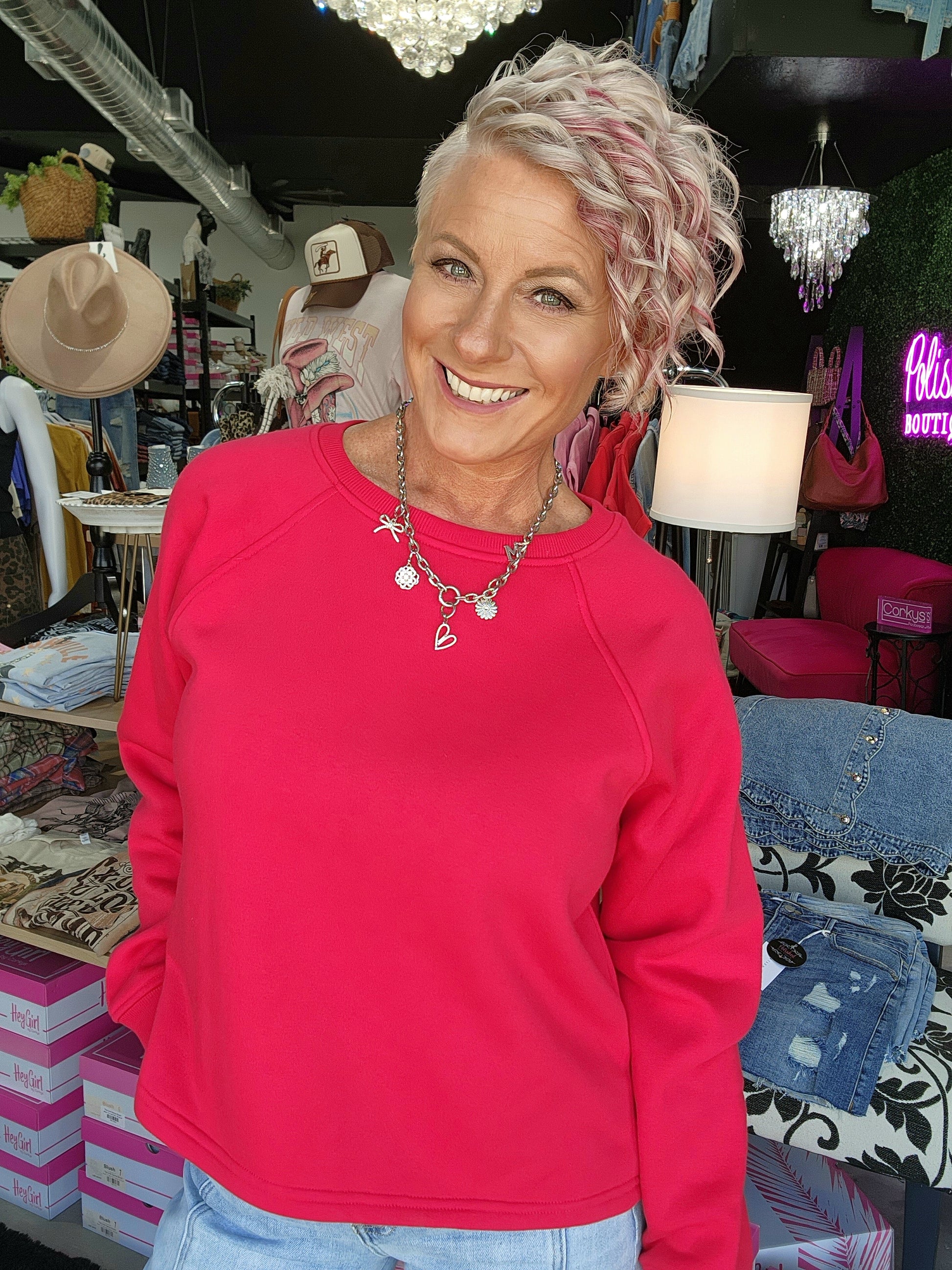 Stay cozy and stylish with The Raglan Sweatshirt from Zenana. Available in several beautiful bright colors, This sweatshirt is soft, warm, and perfect for your casual days. Don't miss out on staying warm in style!