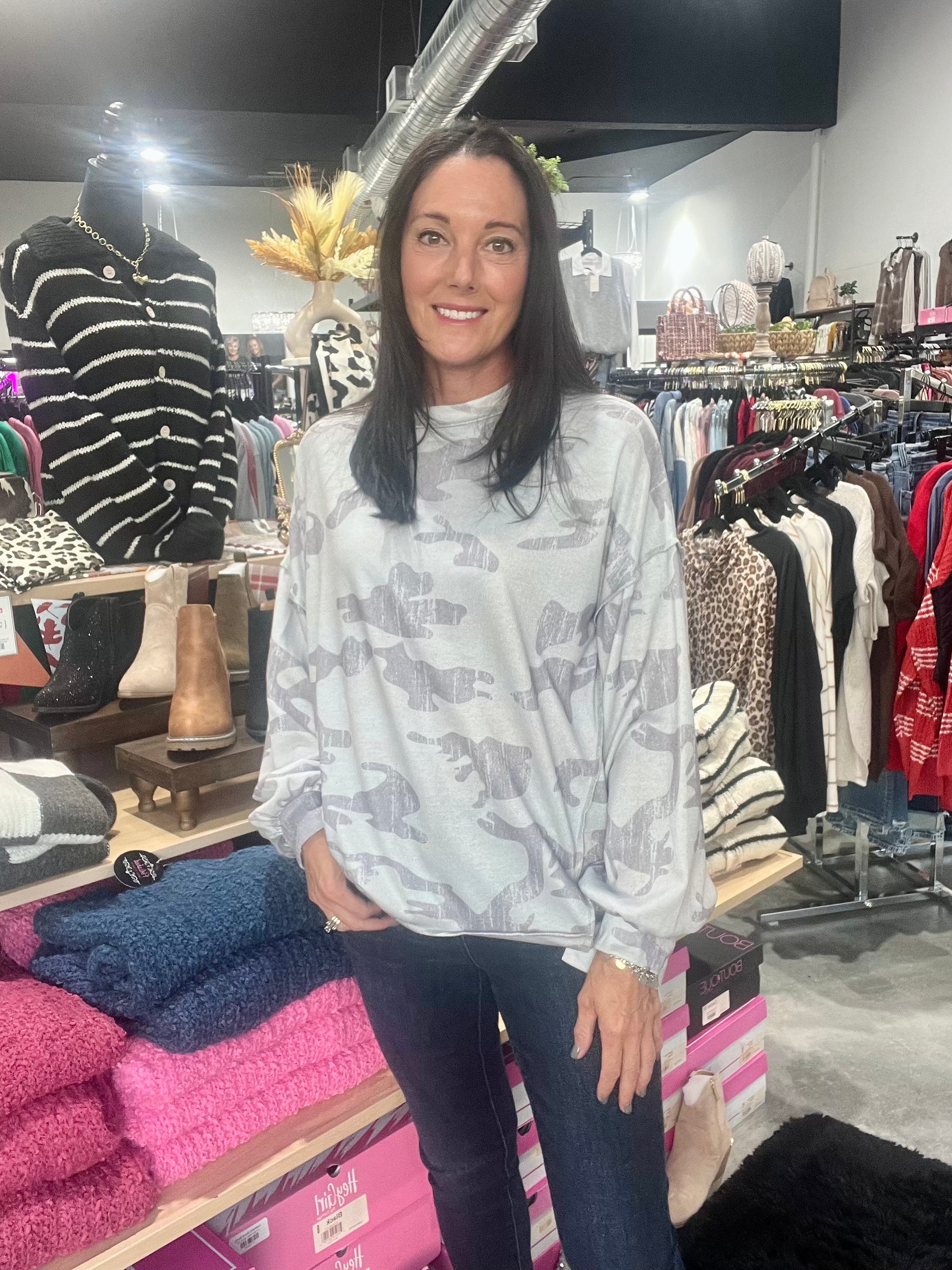 This Retro Camo Sweatshirt feels like a bit retro but on trend. We love its relaxed fit style but also the drop shoulder design. The tunic length is perfect to make wearers feel slim. The uneven hem adds uniqueness and fashion sense to this camo sweat shirt.