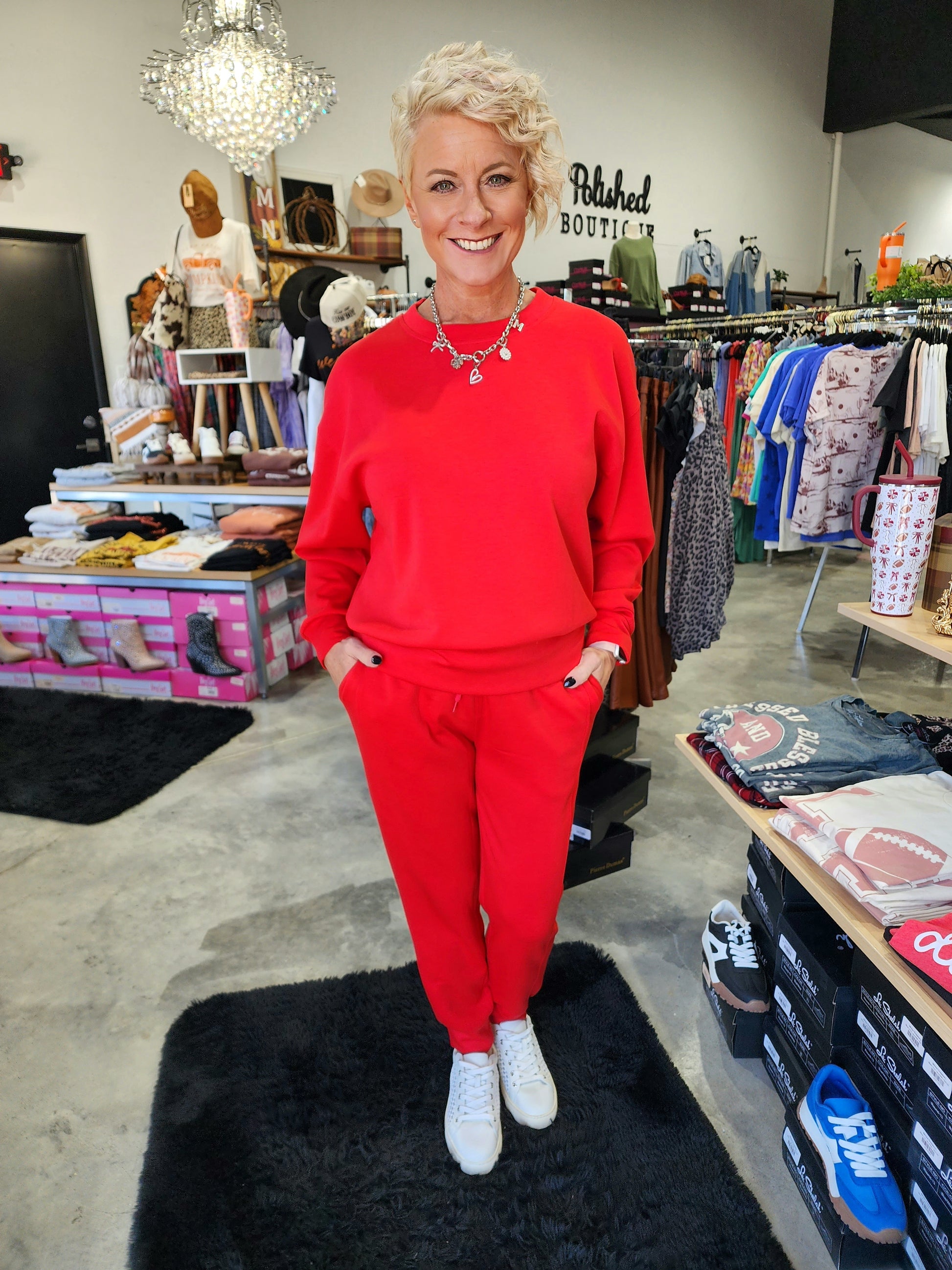Experience ultimate comfort with the Zenana Scuba Crewneck & Joggers Set. Featuring a round pullover top and elastic waist joggers with a convenient drawstring, this set is perfect for casual days and lounging at home or running errands around town. Soft, breathable fabric ensures all-day ease, making it your go-to choice for effortless style and cozy relaxation.
