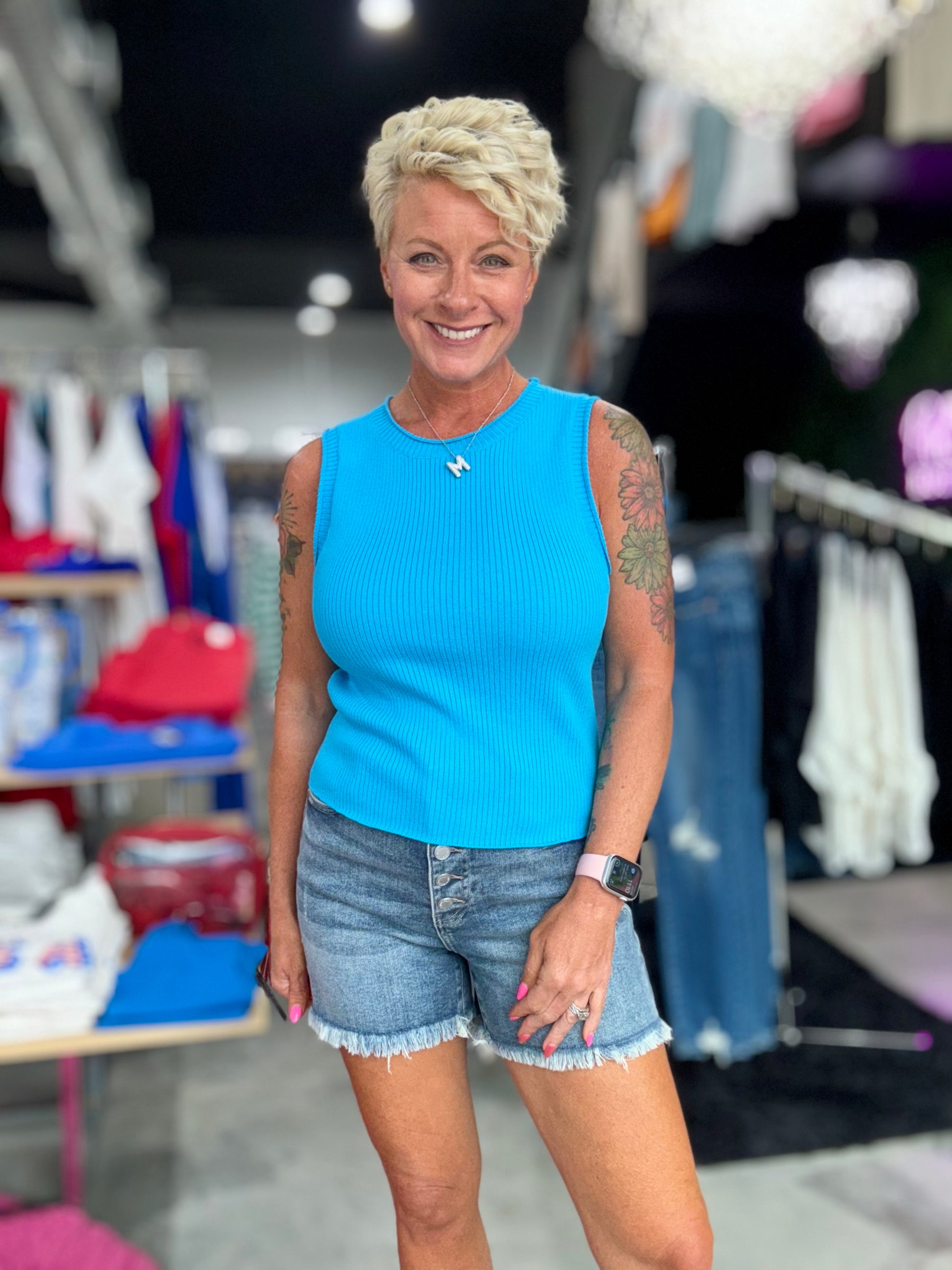 Forever timeless tank top featured in a sleeveless silhouette and soft ribbed fabrication with a crew neckline. Rolled hem detail with crew neckline, this top is the perfect layering piece for every season.