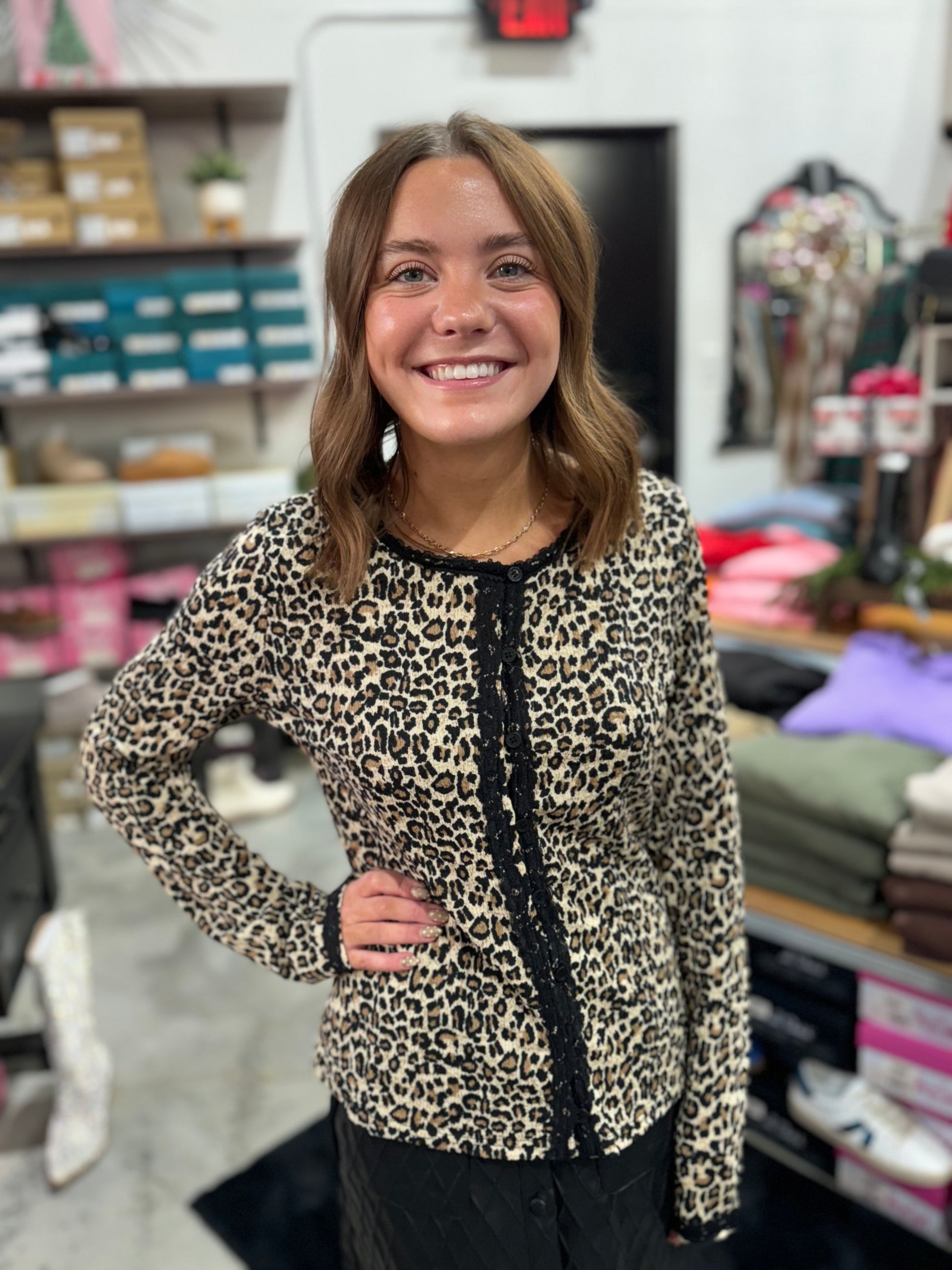 Unleash your wild side with this playful leopard print teddy top! Featuring a classic button-down front, delicate lace trim, and a flattering round neckline, it's the perfect blend of sass and sophistication. Dress it up or down for instant style that roars.