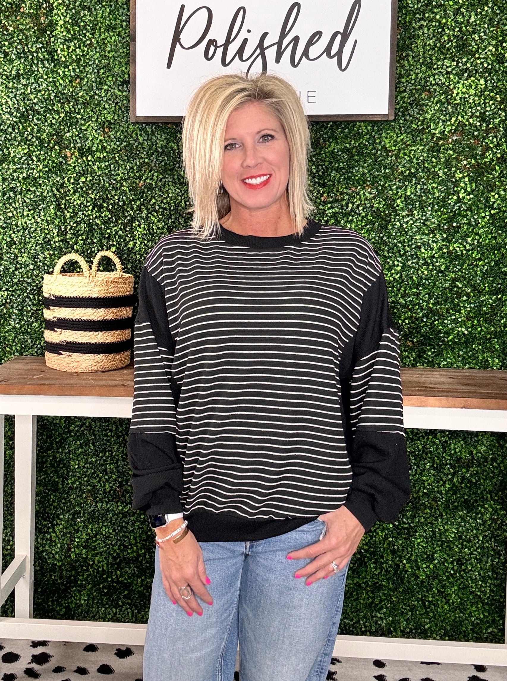 The Wren Top combines comfort and style with its long sleeves and relaxed drop shoulder fit. Featuring a patchwork design with contrasting stripe patterns, it adds a fun, casual touch to your everyday wardrobe. This top is perfect for anyone seeking an easygoing yet thoughtfully designed piece that feels cozy and looks great. Whether you're out and about or relaxing at home, The Wren Top supports your need for both comfort and effortless style.
