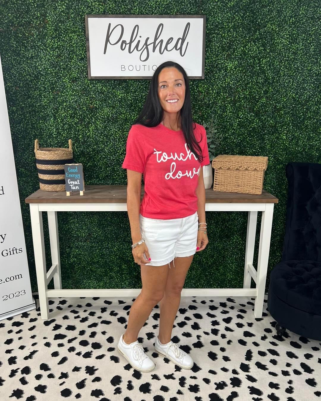 Experience ultimate comfort and sporty style with our TOUCHDOWN PUFF Graphic Tee. Made with 100% cotton for solid colors and 52% cotton/48% poly for heather, this unisex relaxed fit tee features a special puff print design that adds an extra touch of texture and visual interest. Hand screen printed in red with white lettering, this tee is perfect for any casual or athletic look.